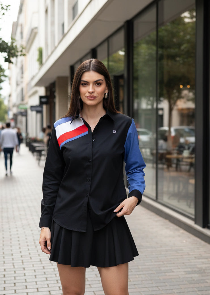 Camisa Muletta regular fit colores en tendencia. Una prenda cómoda y versátil para lucir con estilo en cualquier ocasión. La modelo lleva talla S.