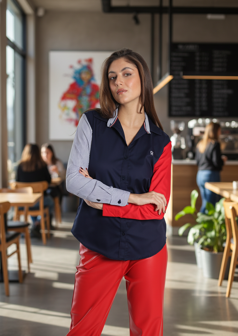 Camisa Muletta regular fit colores en tendencia. Una prenda cómoda y versátil para lucir con estilo en cualquier ocasión. La modelo lleva talla S.
