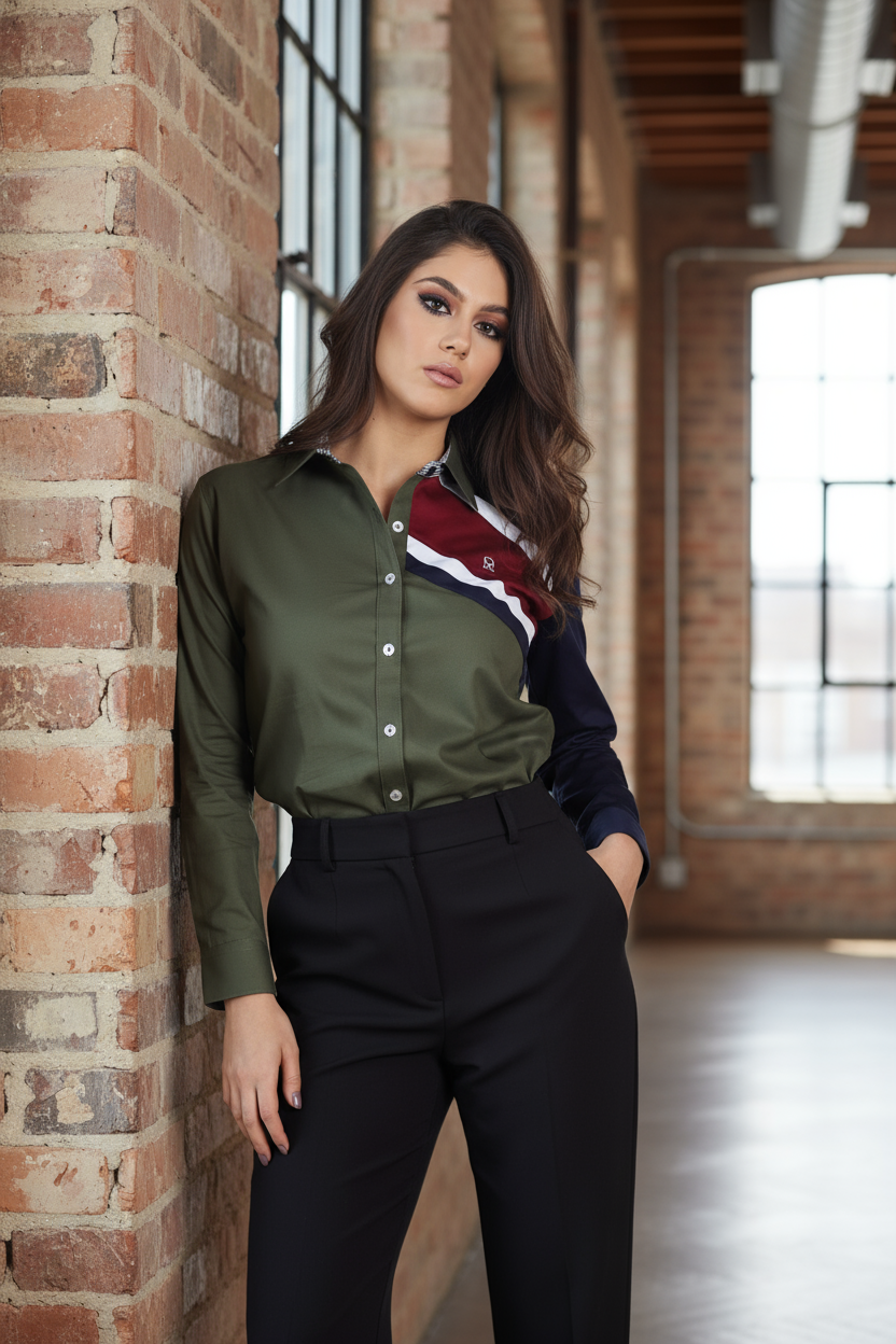 Camisa Muletta regular fit. Una prenda cómoda y versátil para lucir con estilo en cualquier ocasión. La modelo lleva talla S.