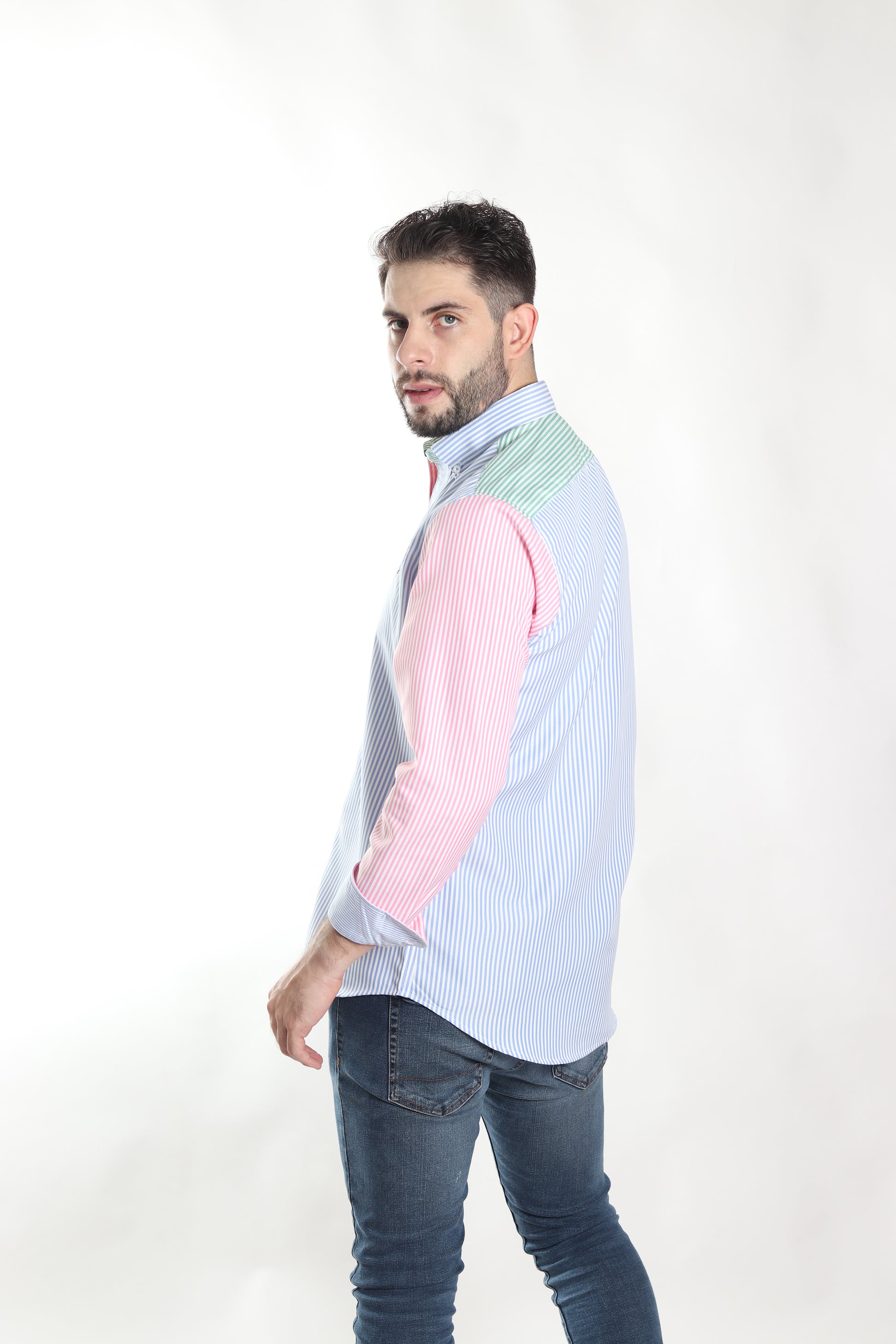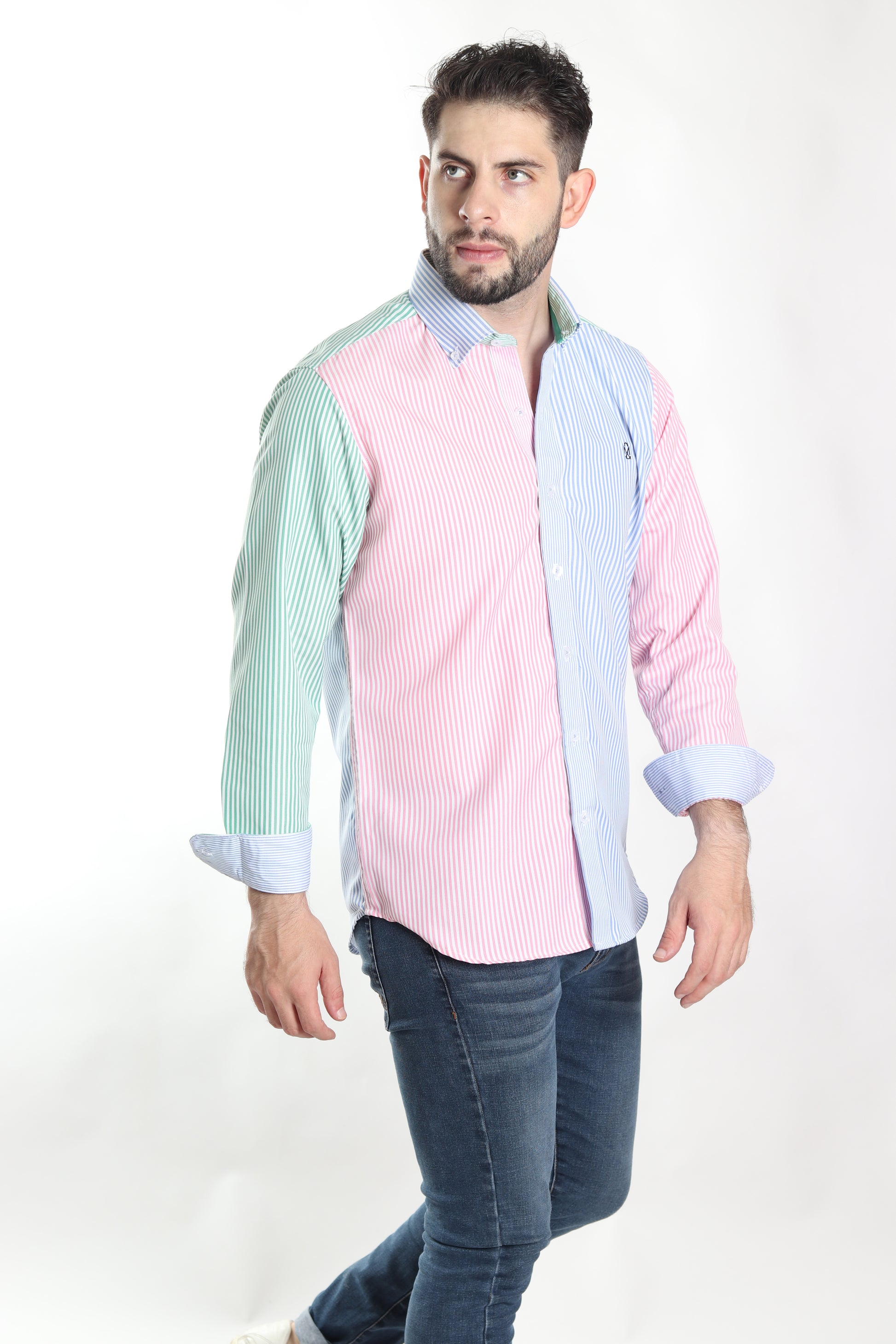 Camisa regular fit en colores combinados. Una prenda cómoda y versátil para lucir con estilo y personalidad. El modelo lleva talla M.