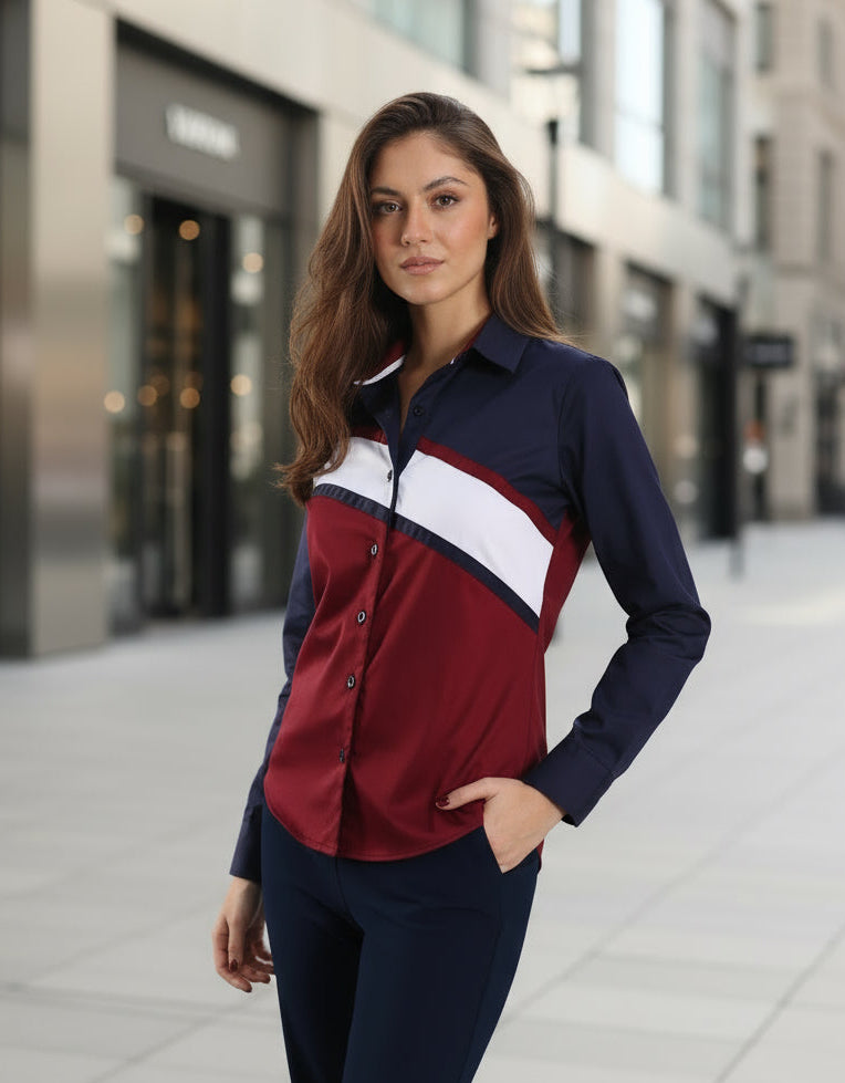 Camisa Muletta regular fit colores en tendencia. Una prenda cómoda y versátil para lucir con estilo en cualquier ocasión. La modelo lleva talla S.