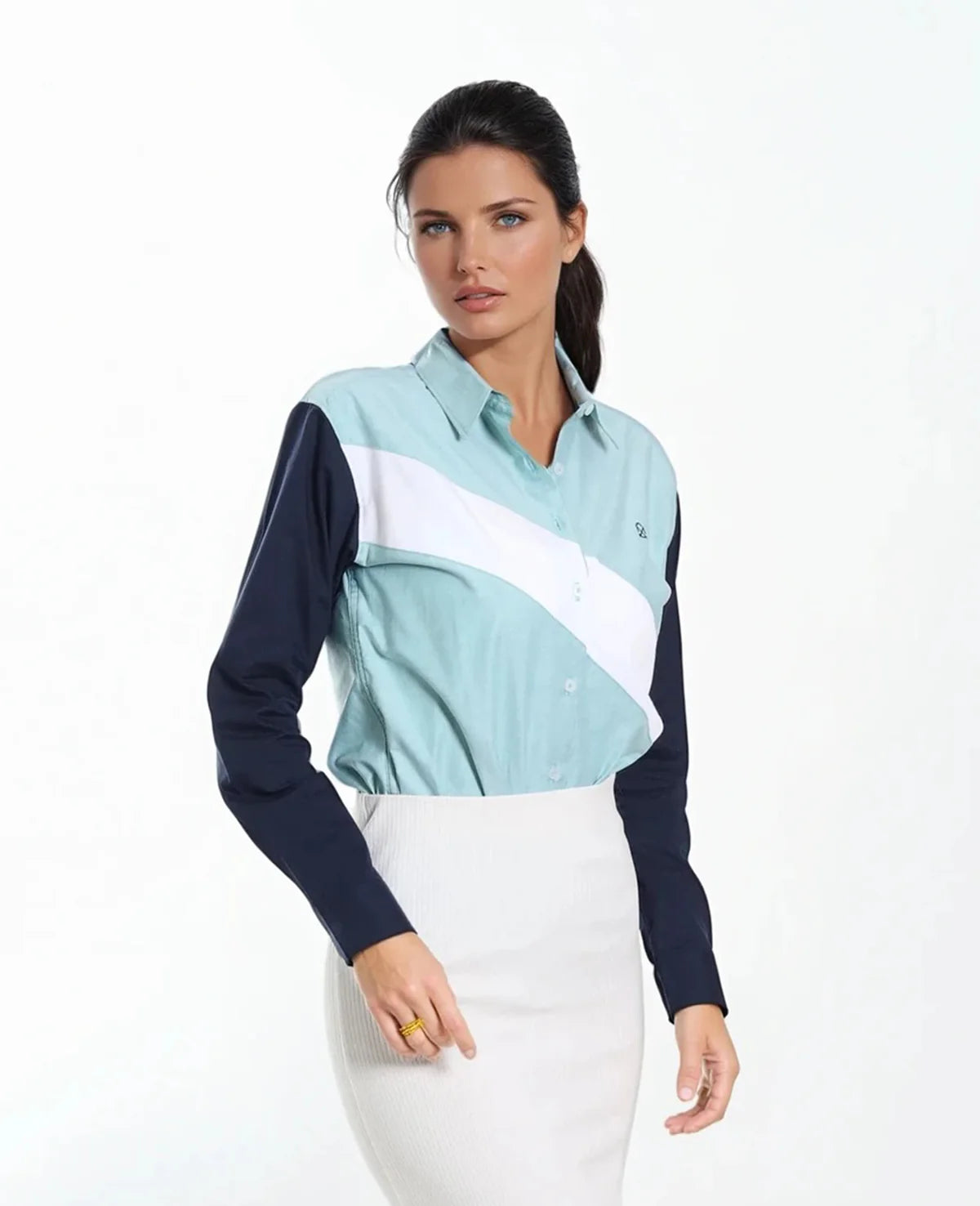 Camisa regular fit. Una prenda cómoda y versátil para lucir con estilo en cualquier ocasión. La modelo lleva talla S.
