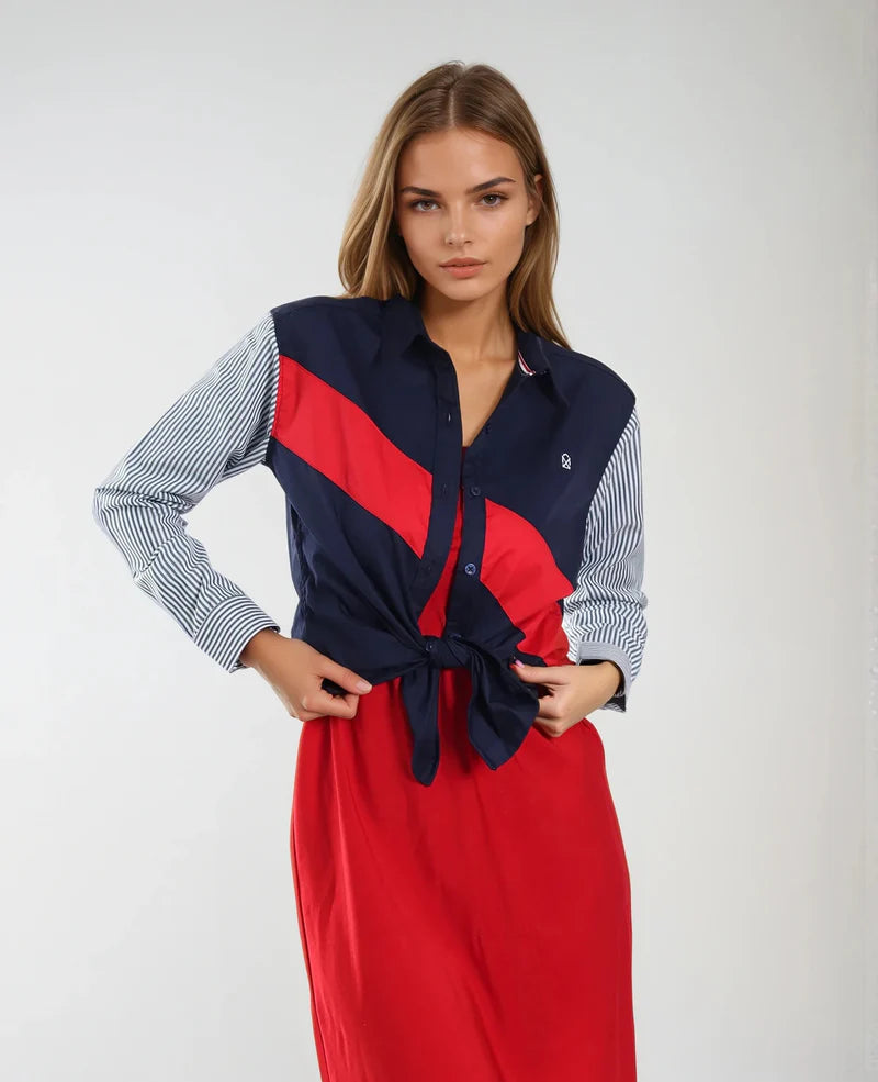 Camisa Muletta regular fit colores en tendencia. Una prenda cómoda y versátil para lucir con estilo en cualquier ocasión. La modelo lleva talla S.