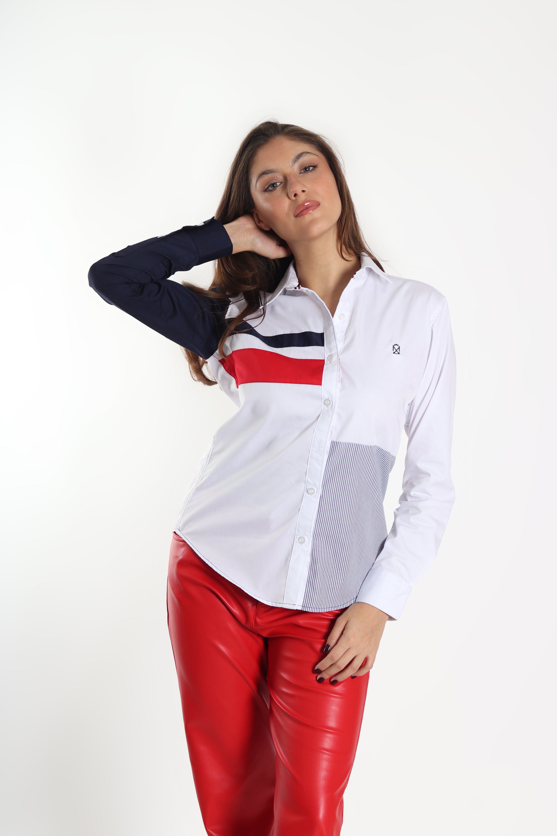 Camisa Muletta regular fit colores en tendencia. Una prenda cómoda y versátil para lucir con estilo en cualquier ocasión. La modelo lleva talla S.
