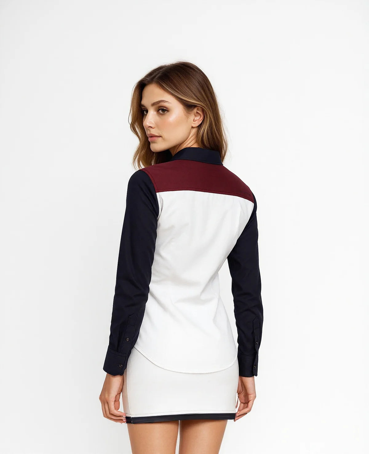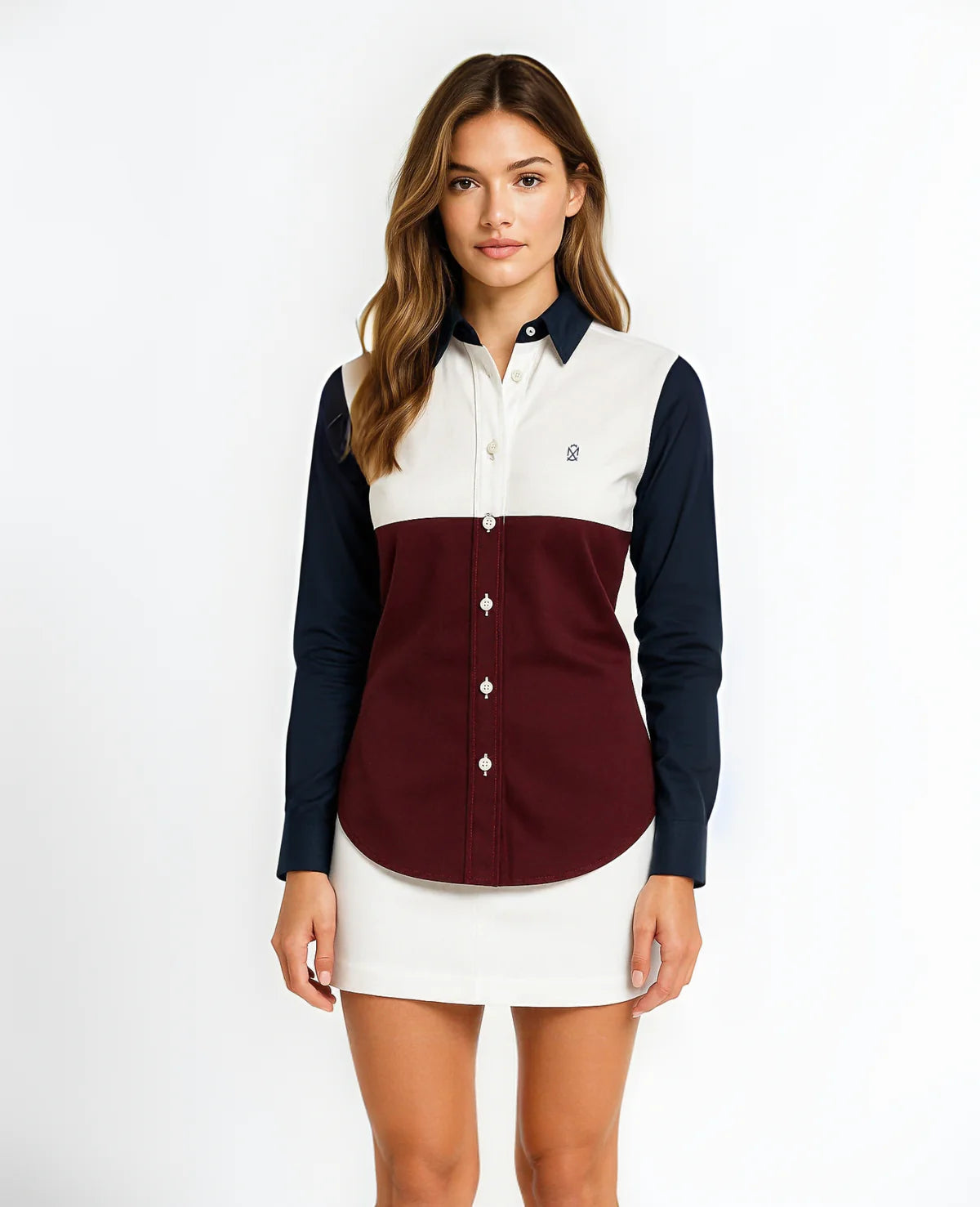 Camisa regular fit. Una prenda cómoda y versátil para lucir con estilo en cualquier ocasión. La modelo lleva talla S.