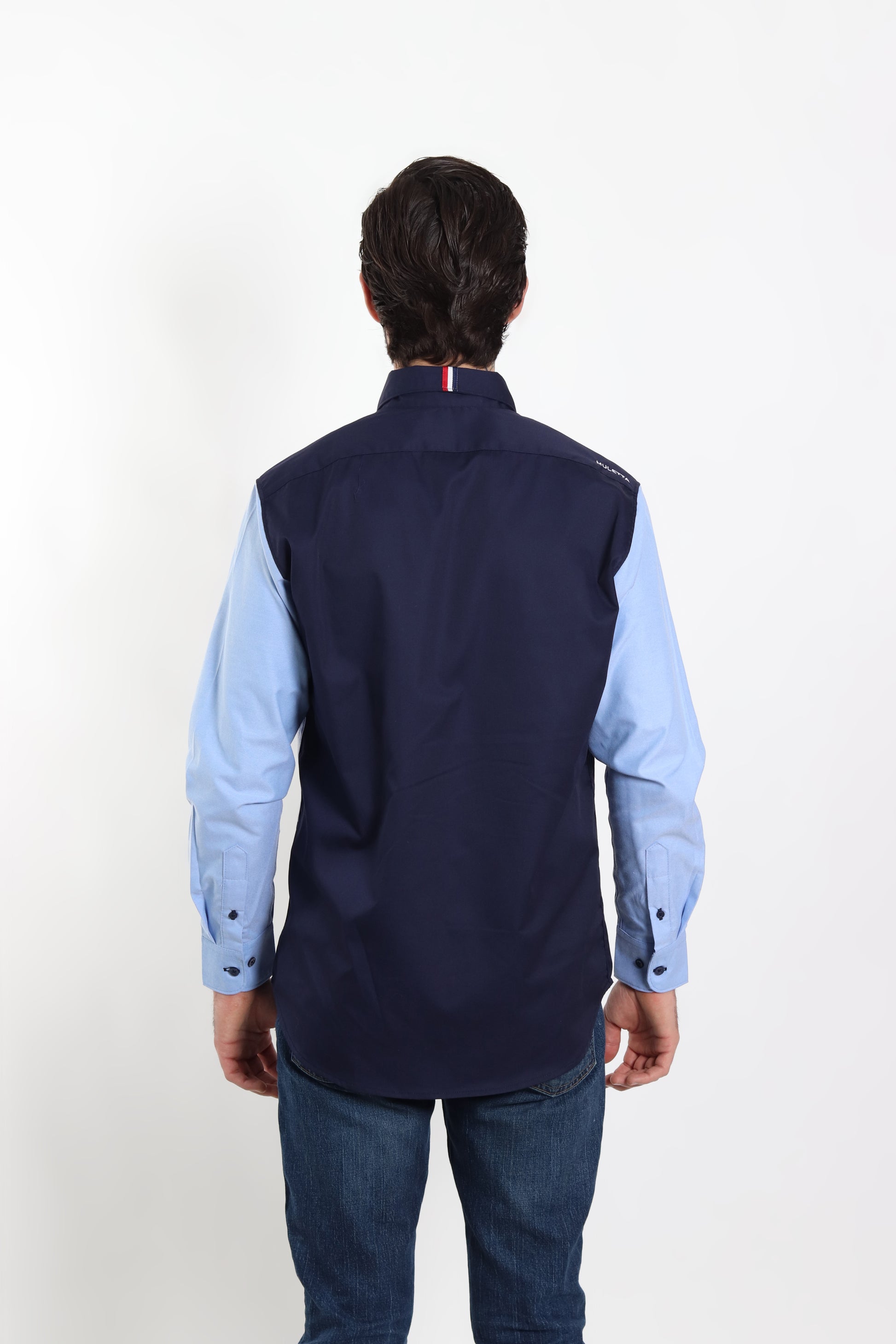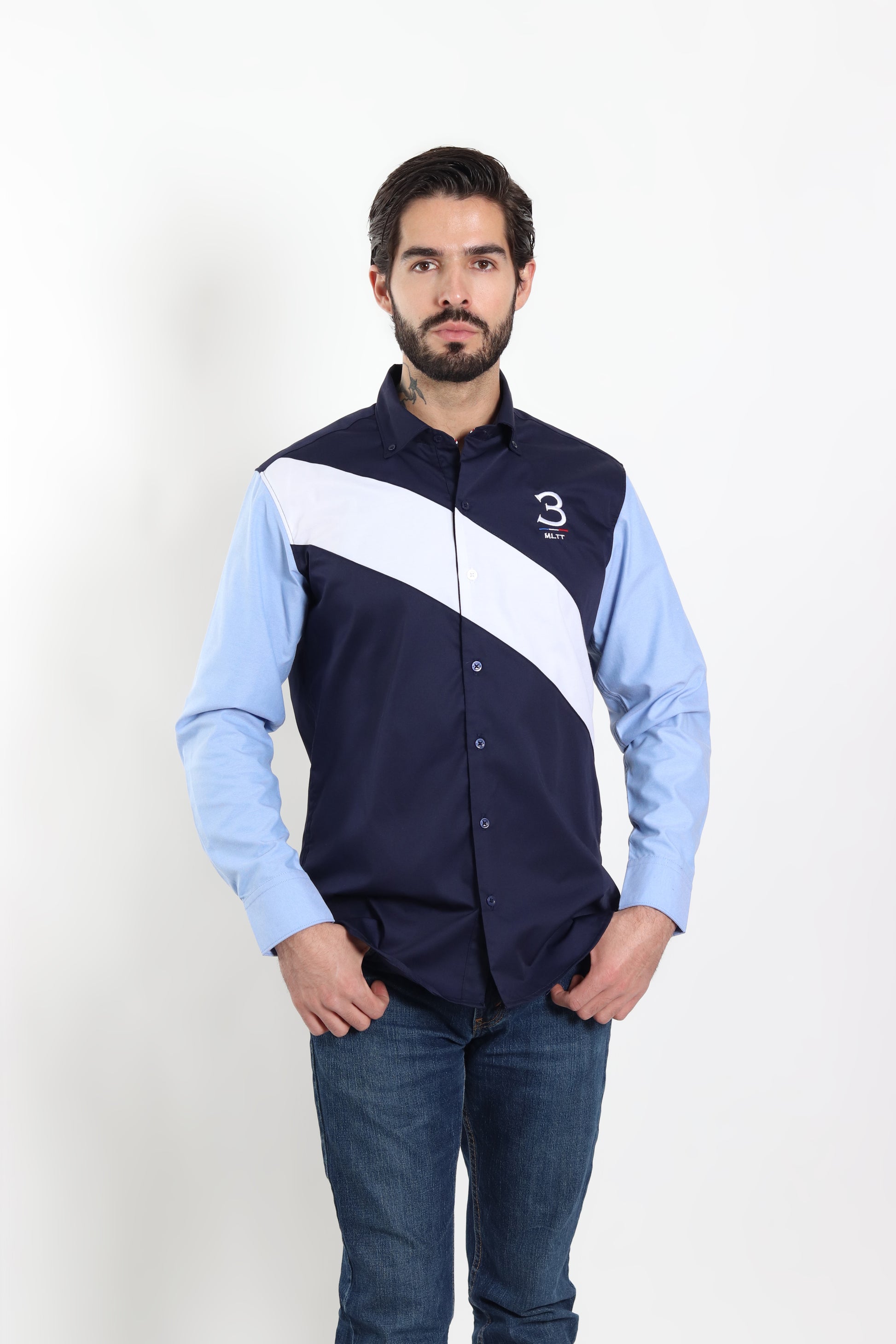 Camisa regular fit en colores combinados. Una prenda cómoda y versátil para lucir con estilo y personalidad. El modelo lleva talla M.