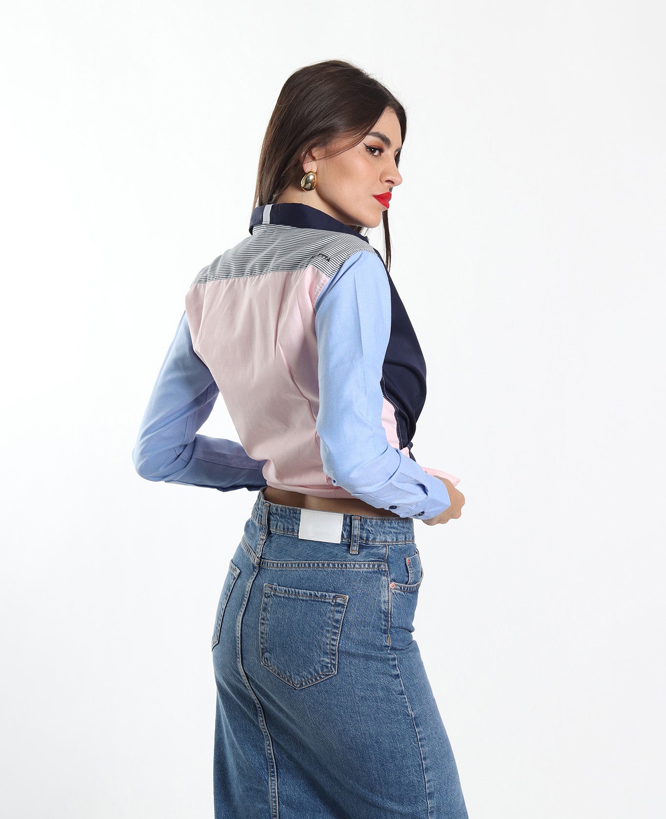 Camisa Muletta regular fit colores en tendencia. Una prenda cómoda y versátil para lucir con estilo en cualquier ocasión. La modelo lleva talla S.