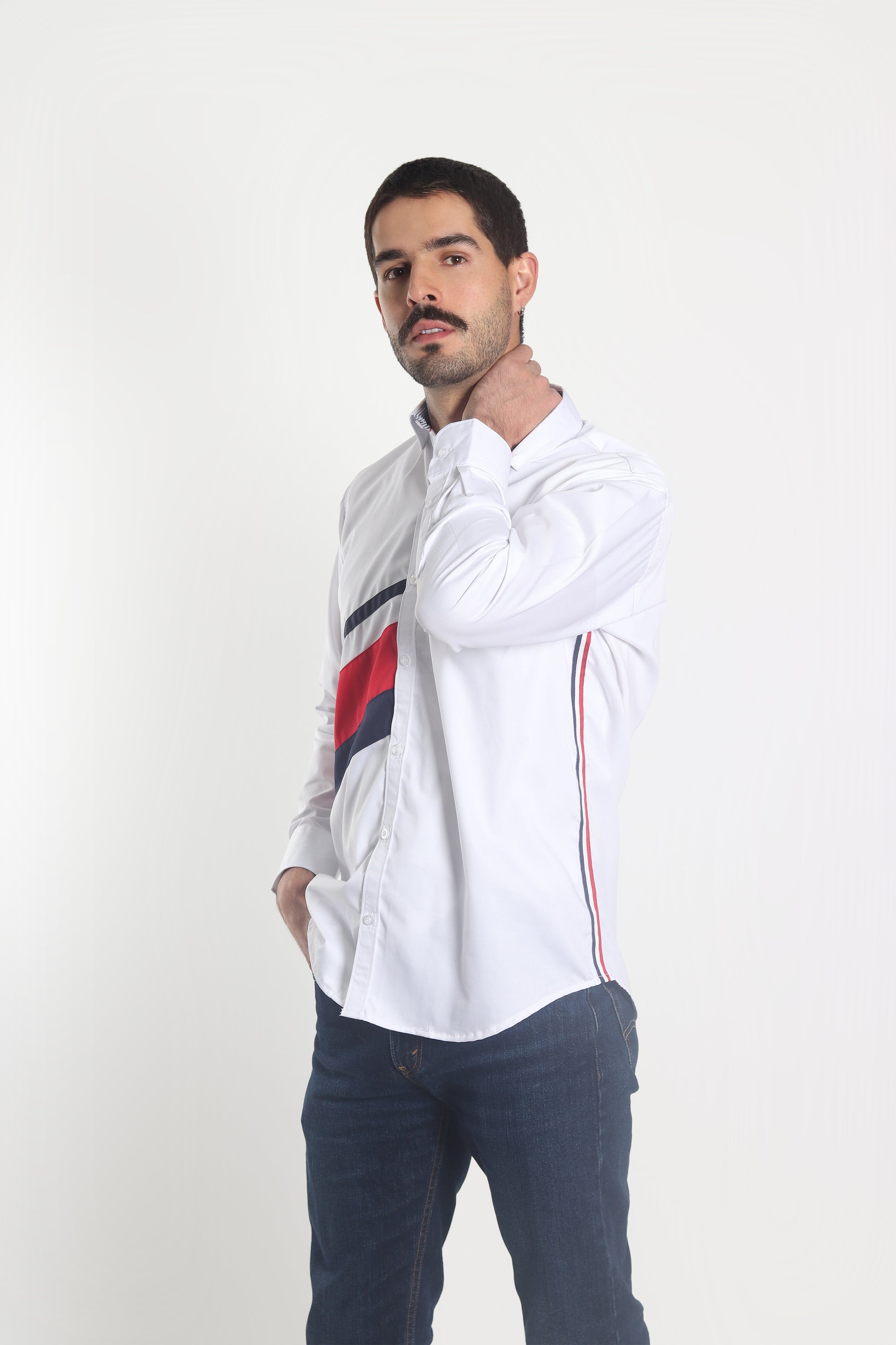Camisa regular fit en colores combinados. Una prenda cómoda y versátil para lucir con estilo y personalidad. El modelo lleva talla M.