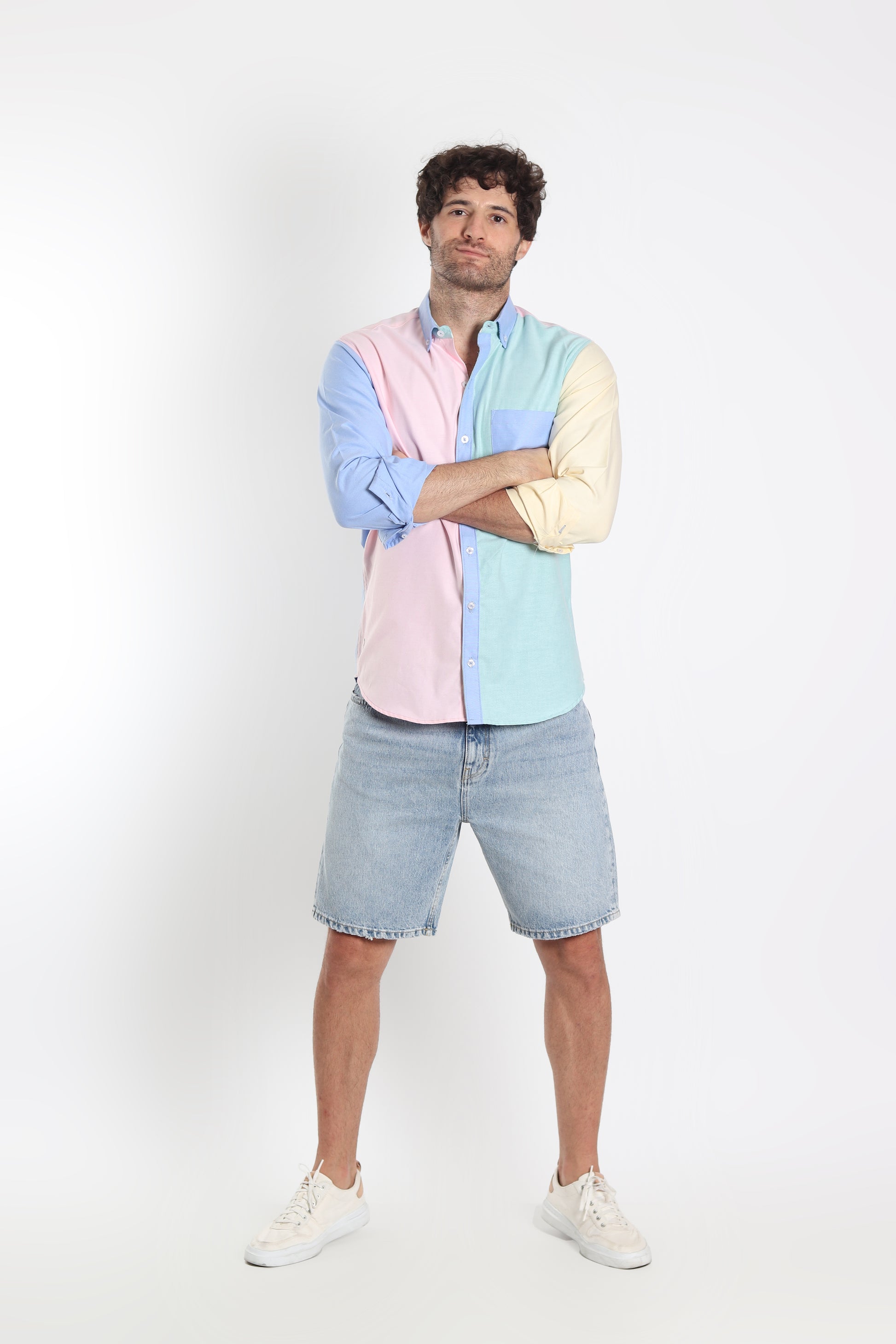 Camisa regular fit en colores combinados. Una prenda cómoda y versátil para lucir con estilo y personalidad. El modelo lleva talla M.