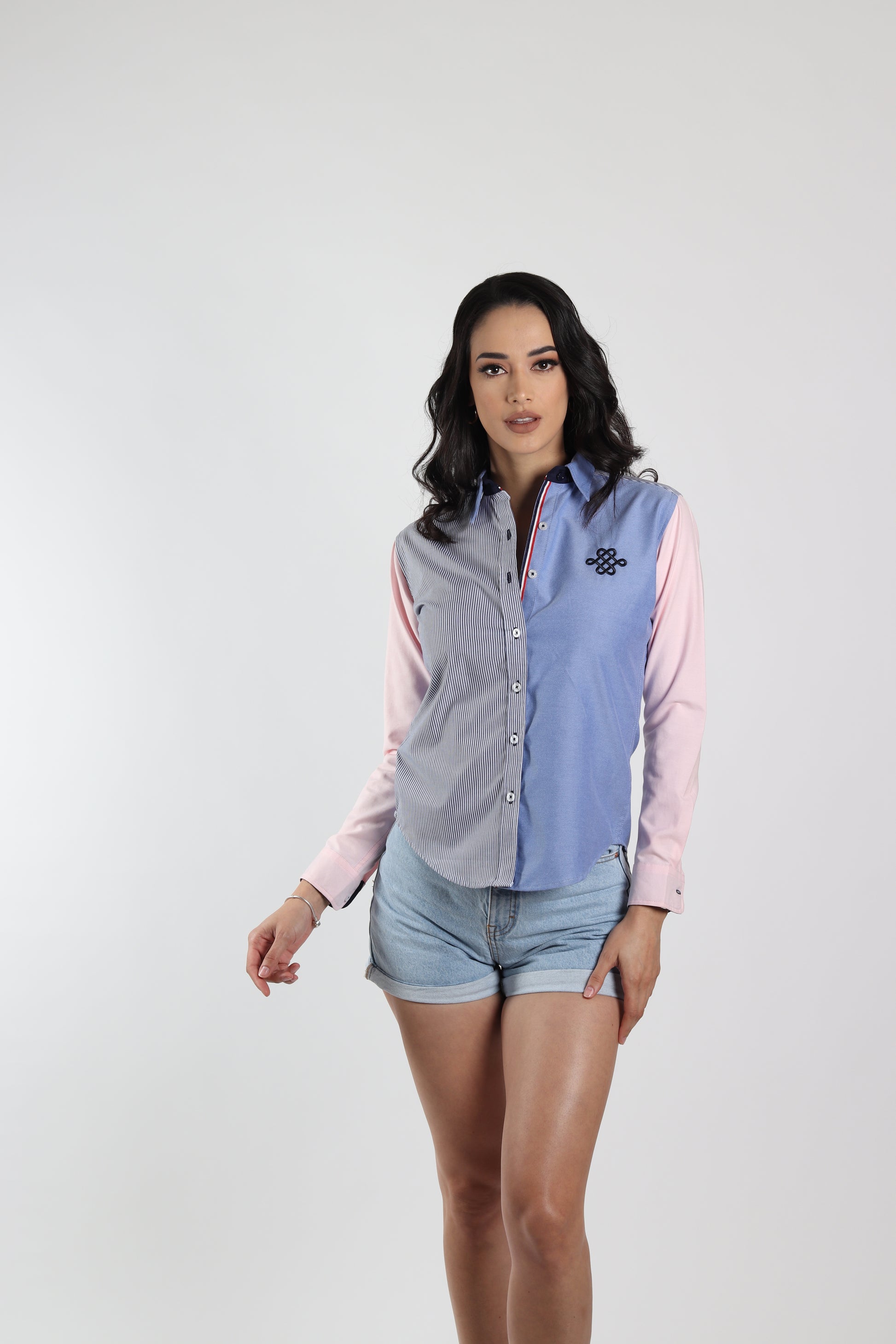 Camisa Muletta regular fit colores en tendencia. Una prenda cómoda y versátil para lucir con estilo en cualquier ocasión. La modelo lleva talla S.