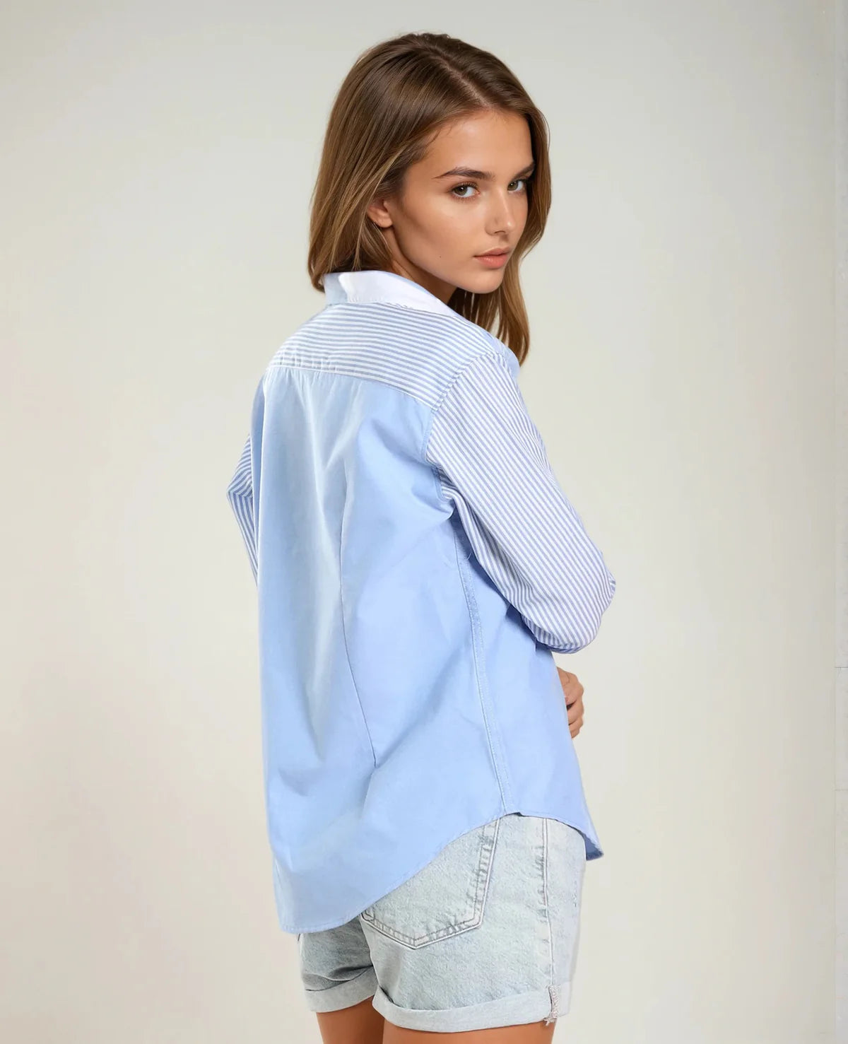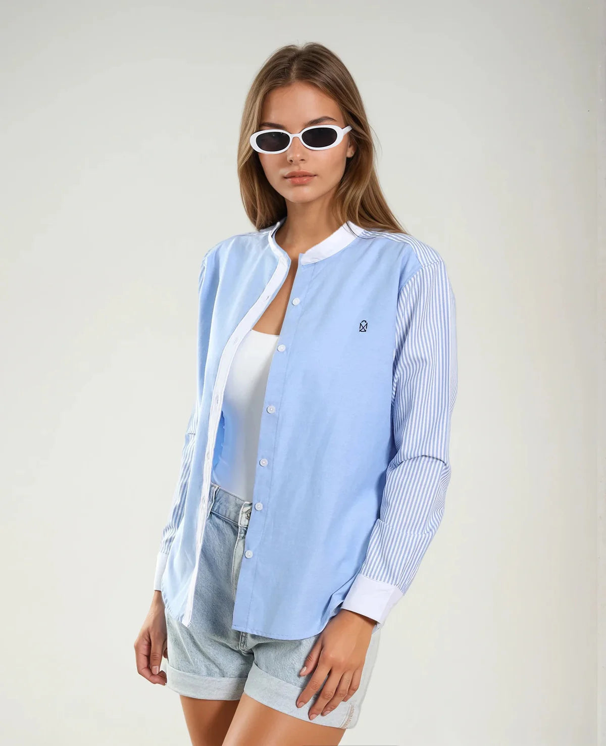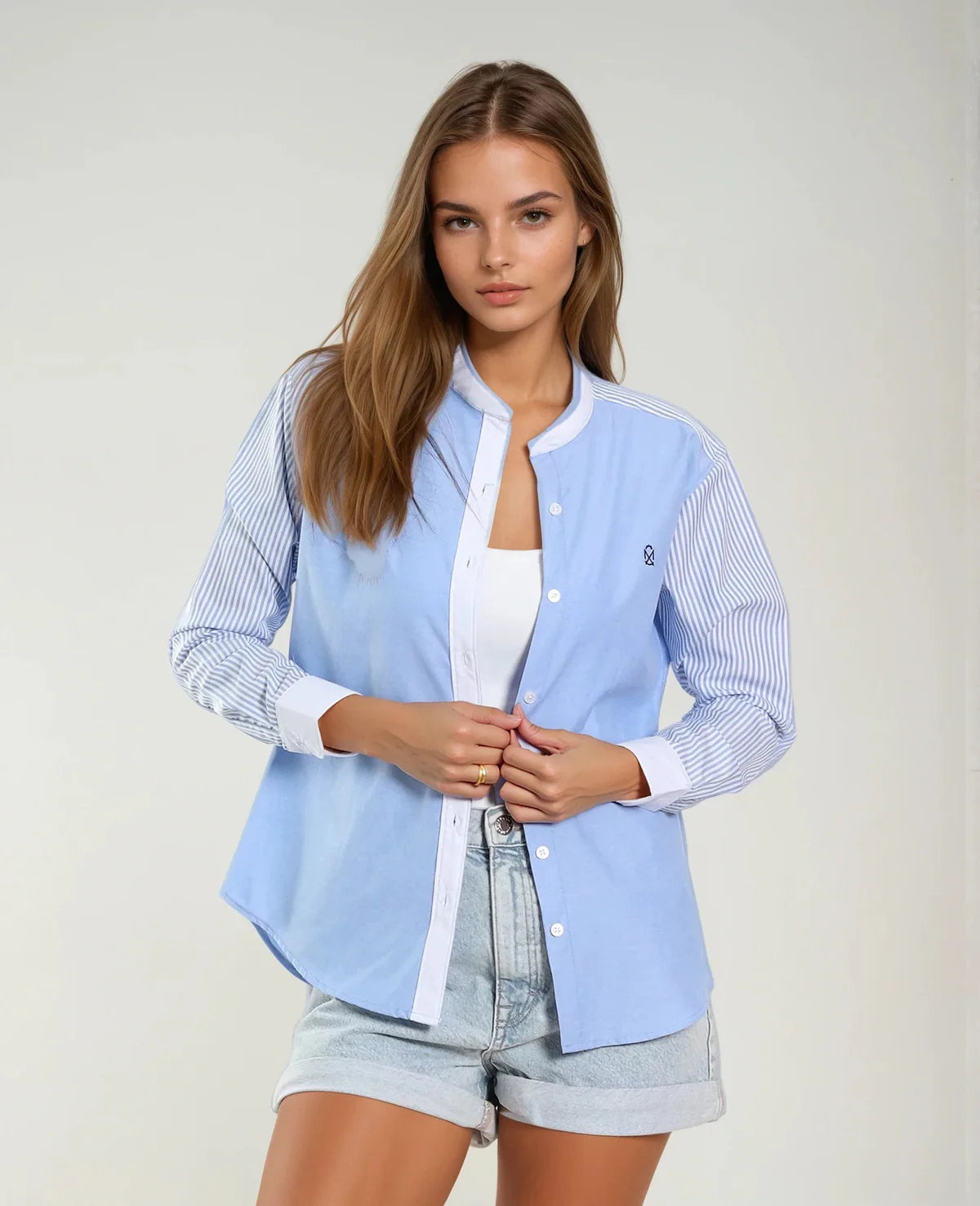 Camisa Muletta regular fit colores en tendencia. Una prenda cómoda y versátil para lucir con estilo en cualquier ocasión. La modelo lleva talla S.