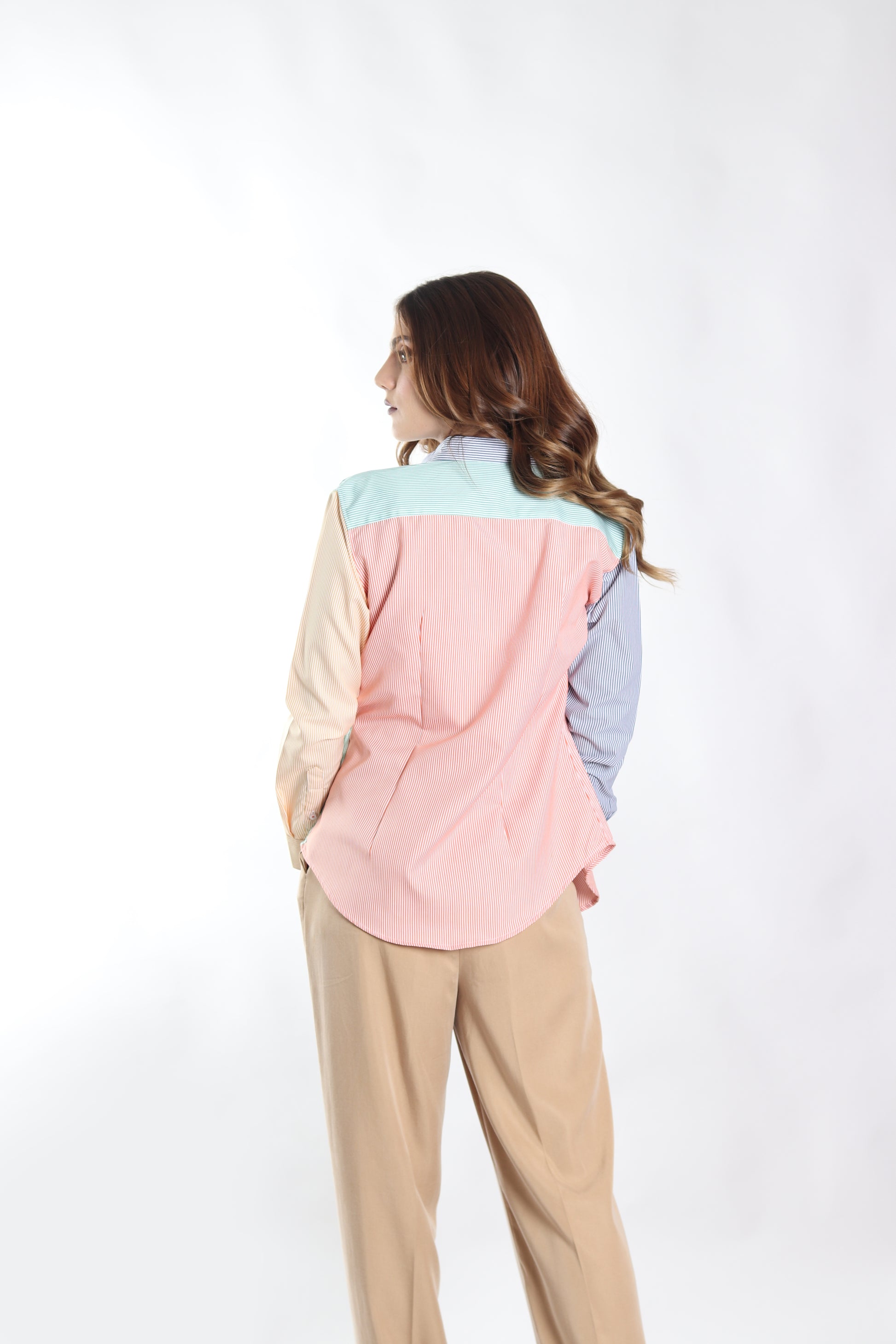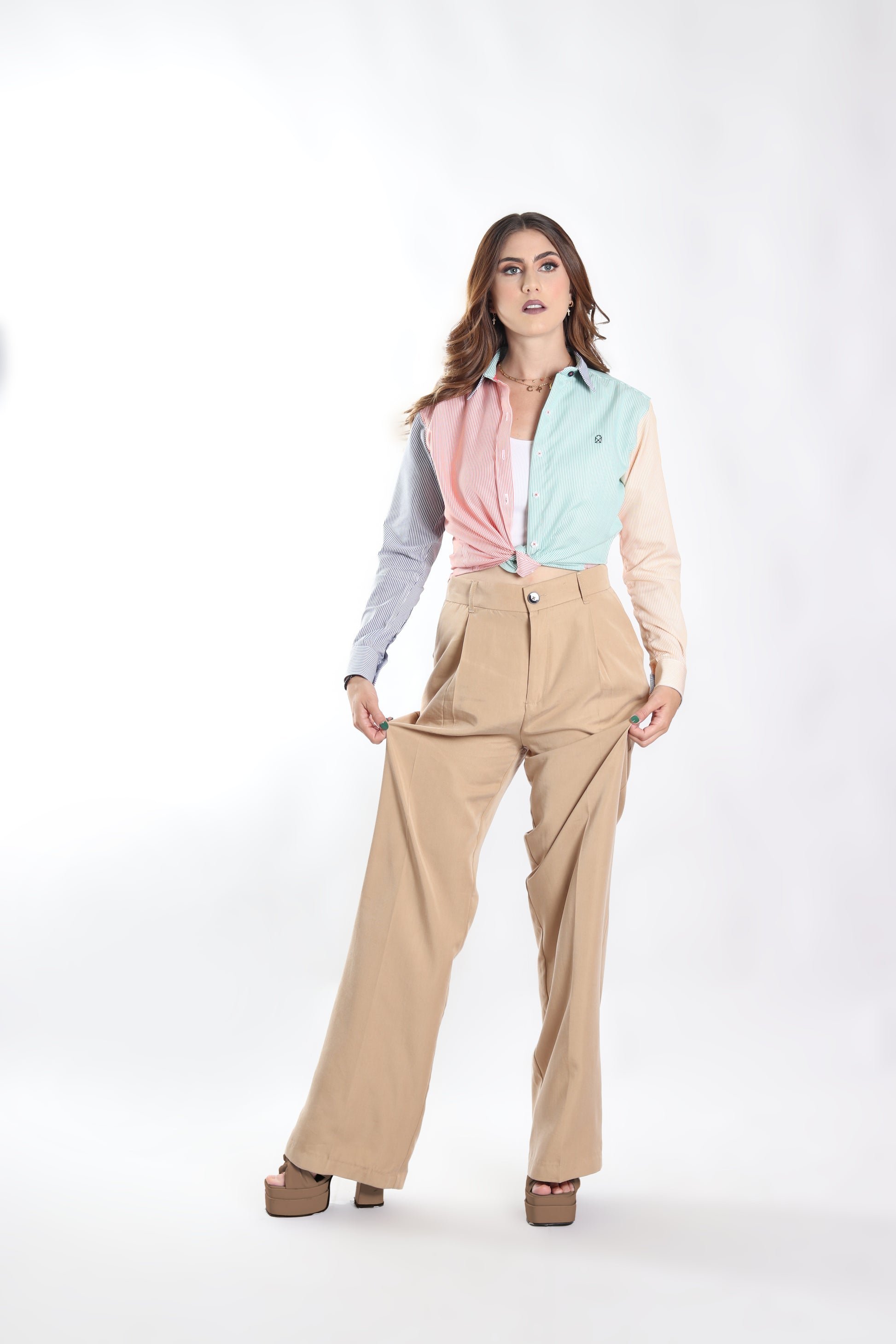 Camisa Muletta regular fit colores en tendencia. Una prenda cómoda y versátil para lucir con estilo en cualquier ocasión. La modelo lleva talla S.