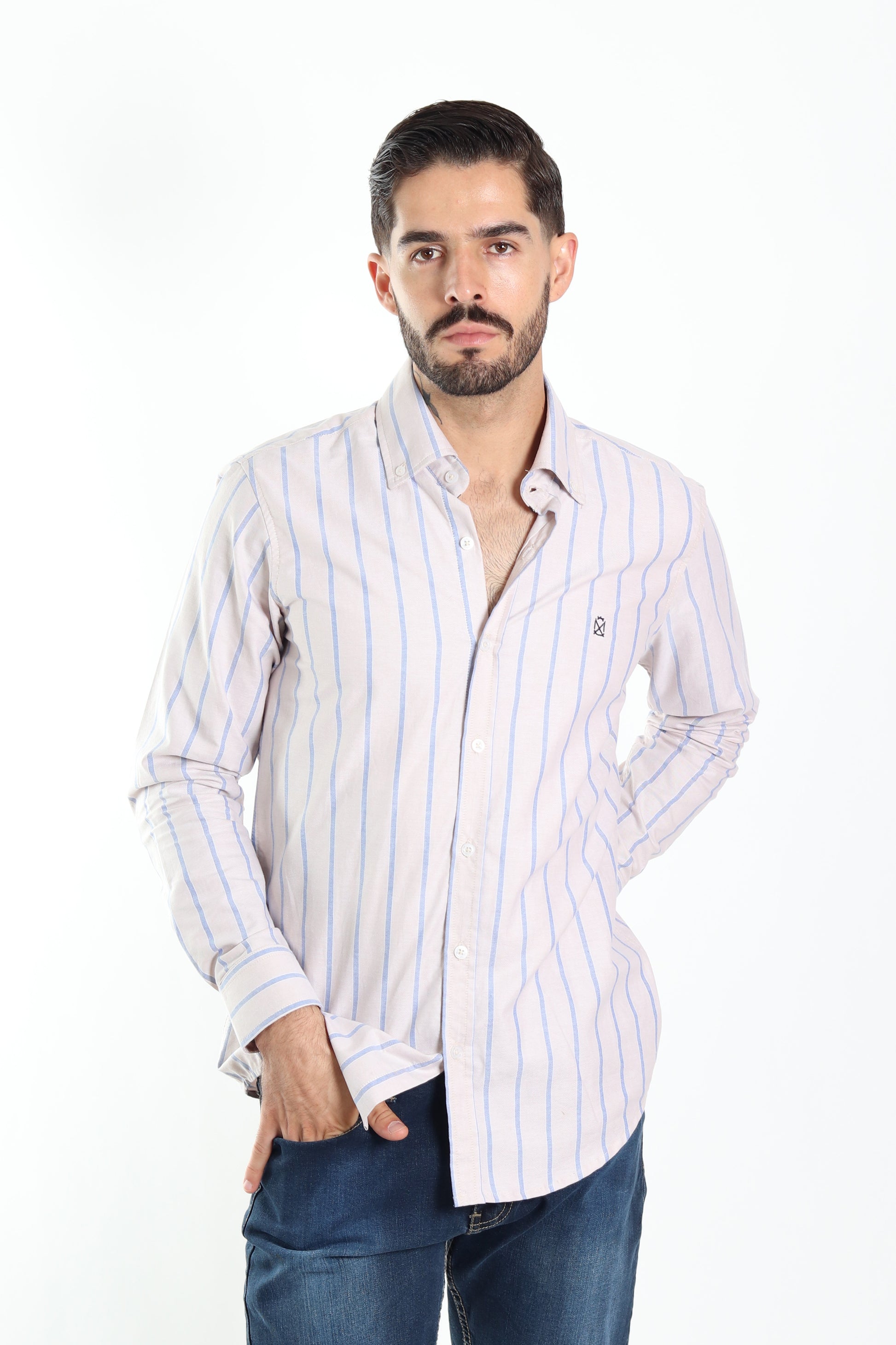 Camisa regular fit en colores combinados. Una prenda cómoda y versátil para lucir con estilo y personalidad. El modelo lleva talla M.