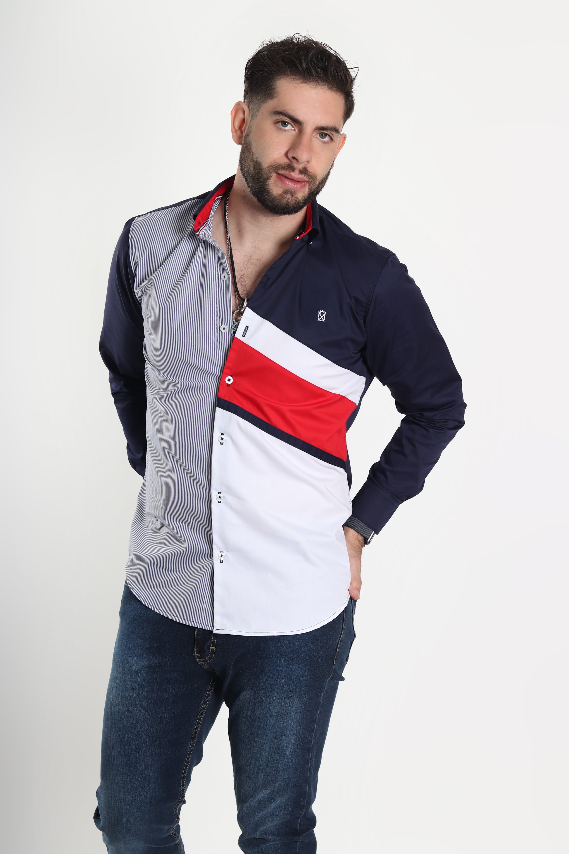Camisa regular fit en colores combinados. Una prenda cómoda y versátil para lucir con estilo y personalidad. El modelo lleva talla M.