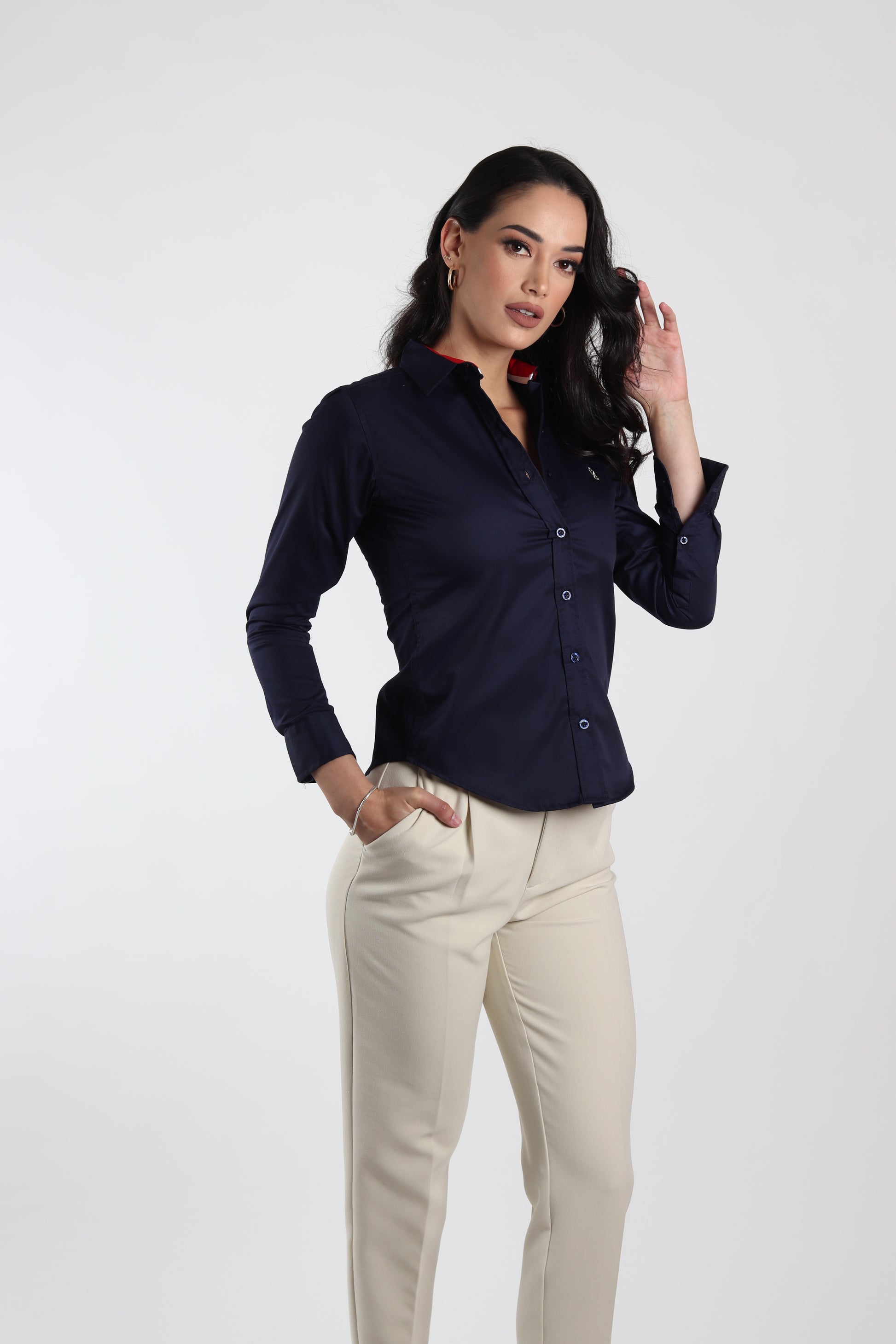 Camisa Muletta regular fit colores en tendencia. Una prenda cómoda y versátil para lucir con estilo en cualquier ocasión. La modelo lleva talla S.