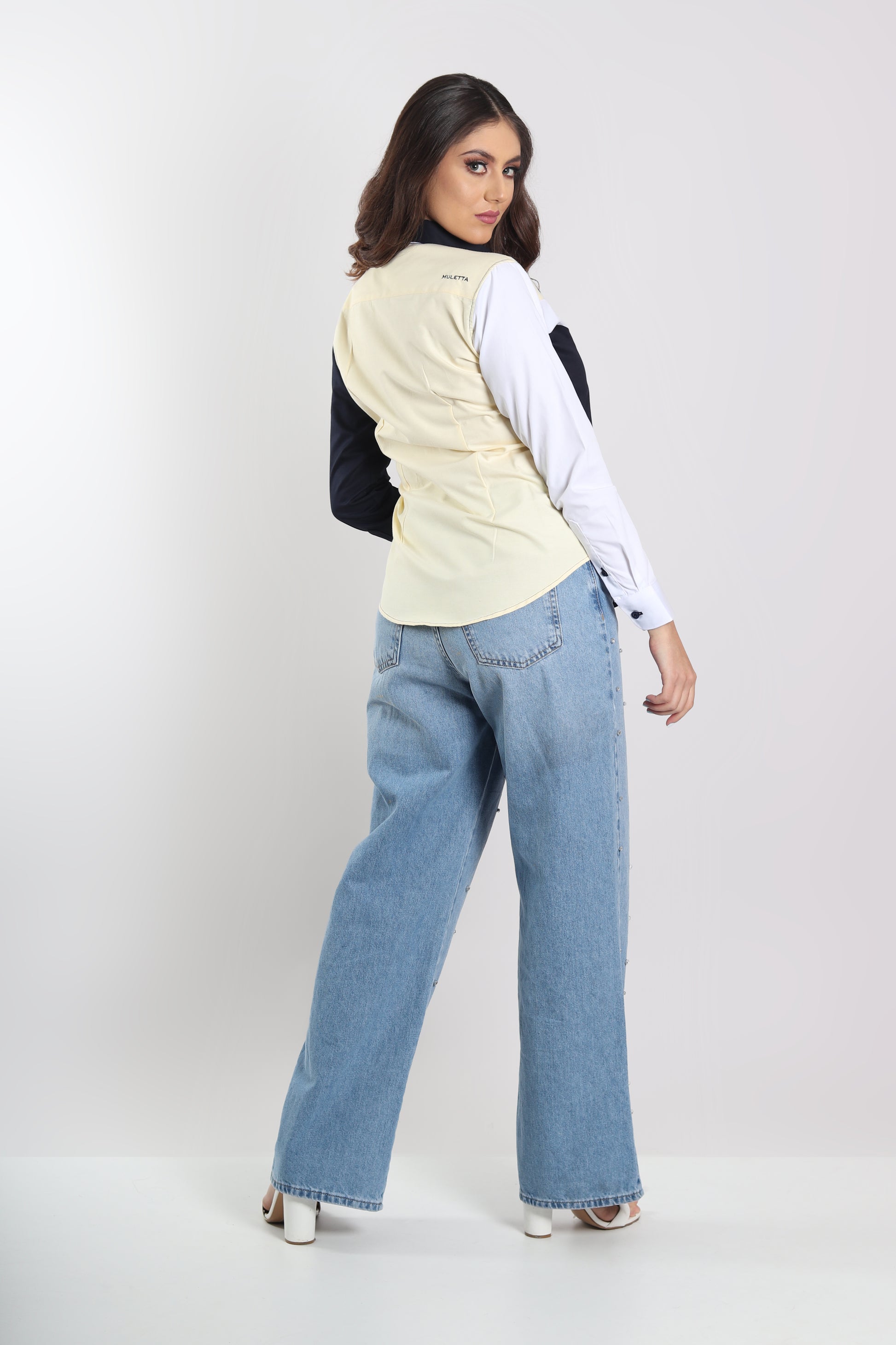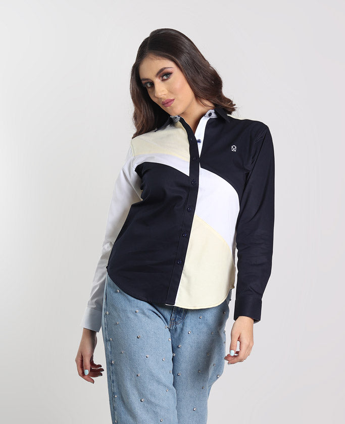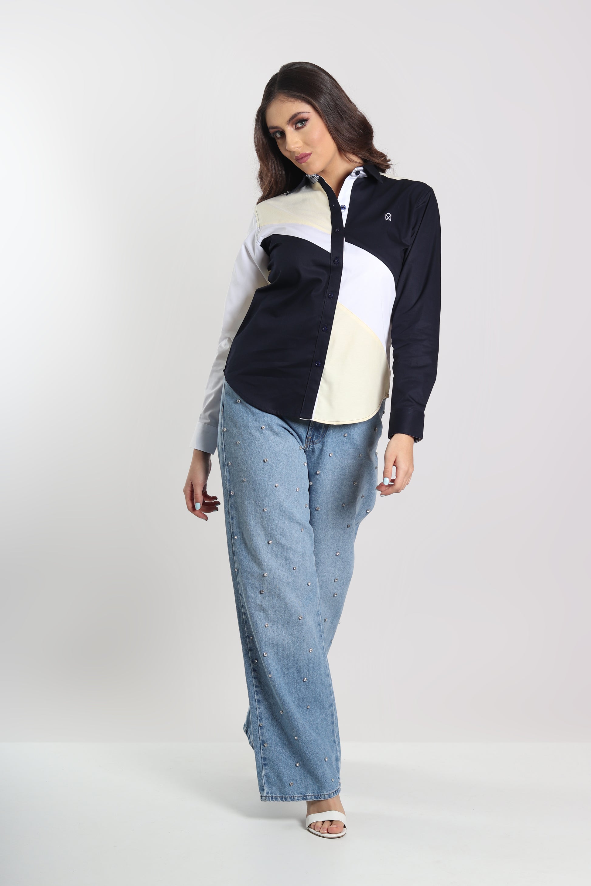 Camisa Muletta regular fit colores en tendencia. Una prenda cómoda y versátil para lucir con estilo en cualquier ocasión. La modelo lleva talla S.