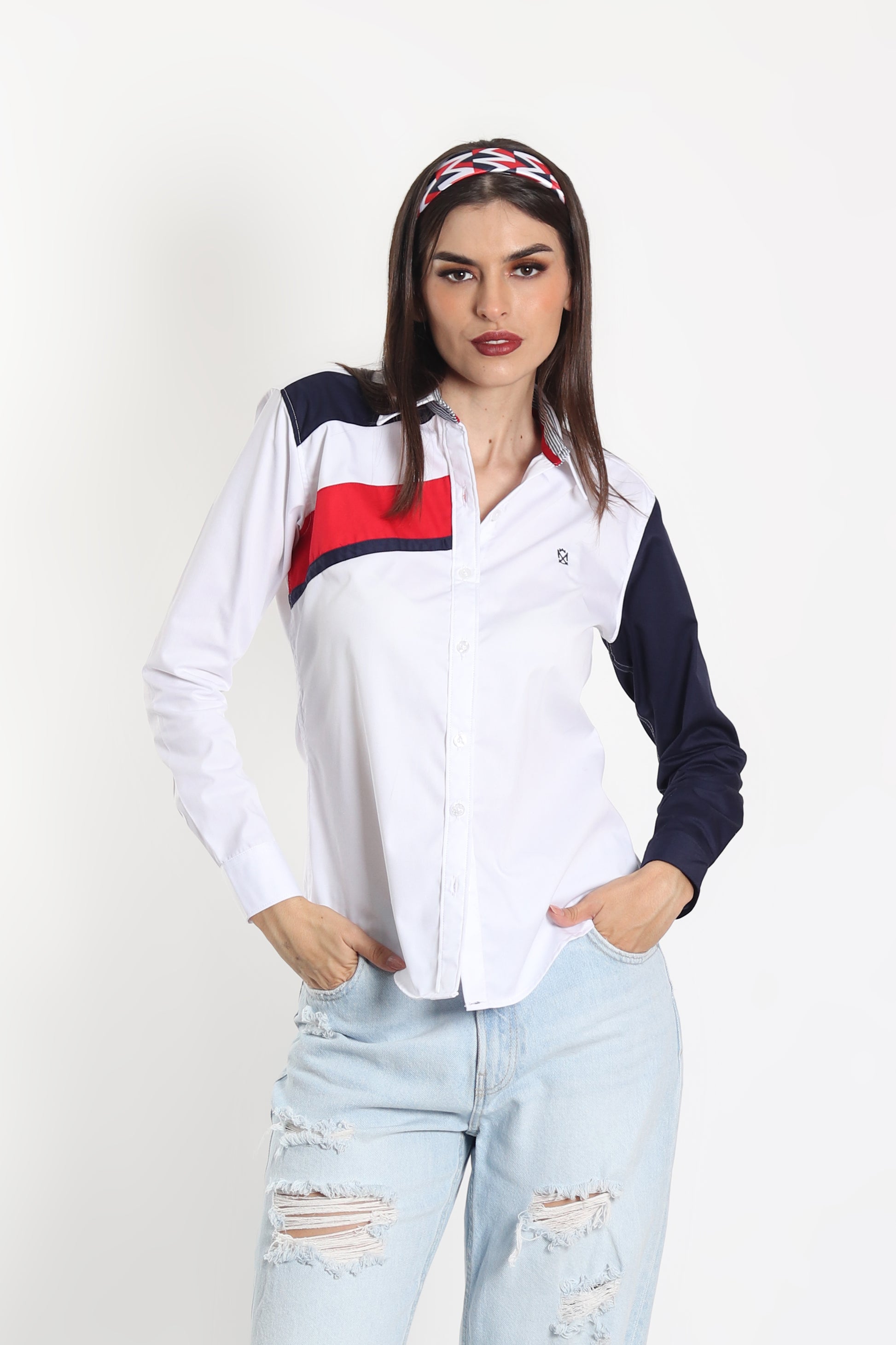 Camisa Muletta regular fit colores en tendencia. Una prenda cómoda y versátil para lucir con estilo en cualquier ocasión. La modelo lleva talla S.