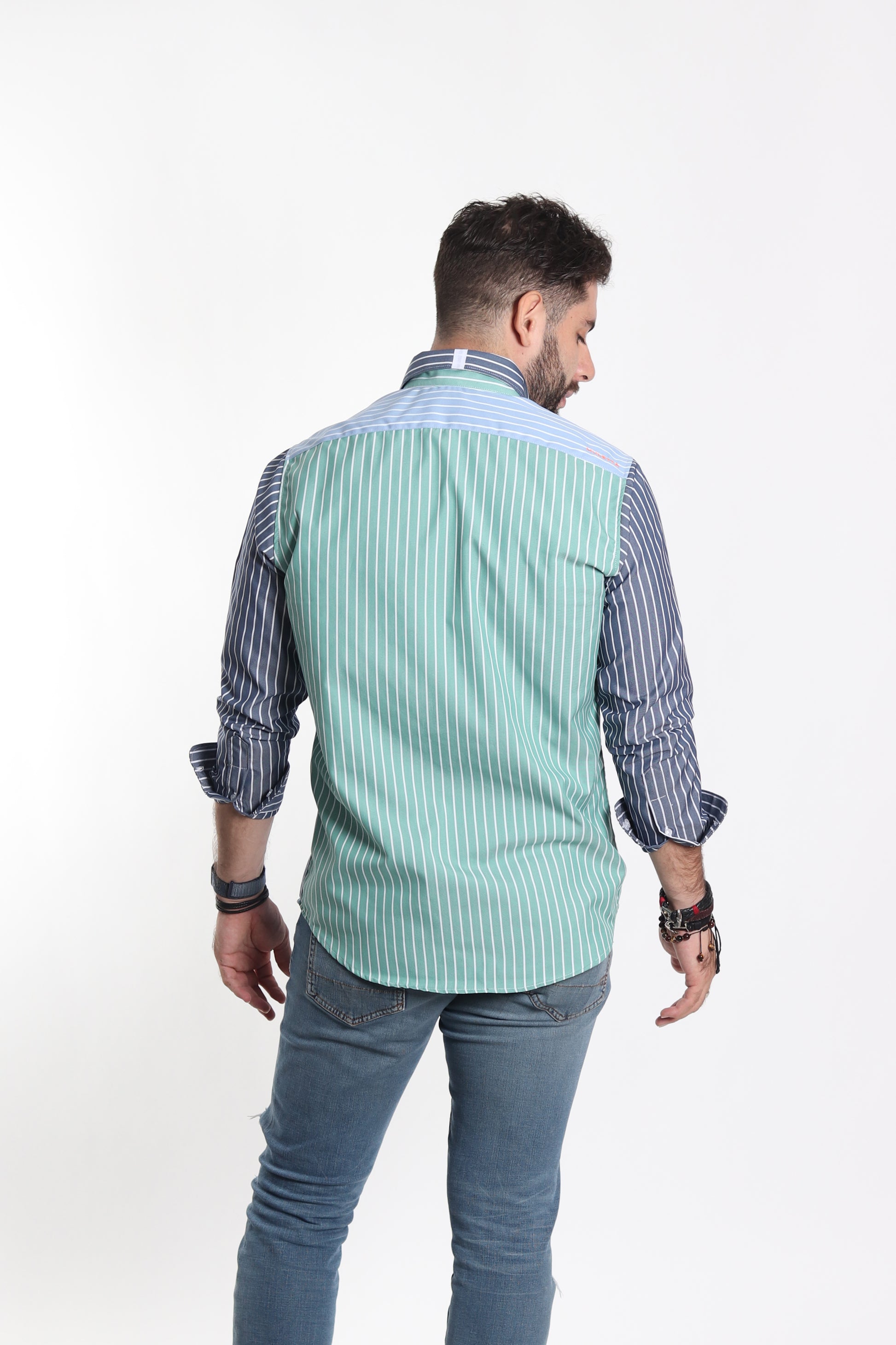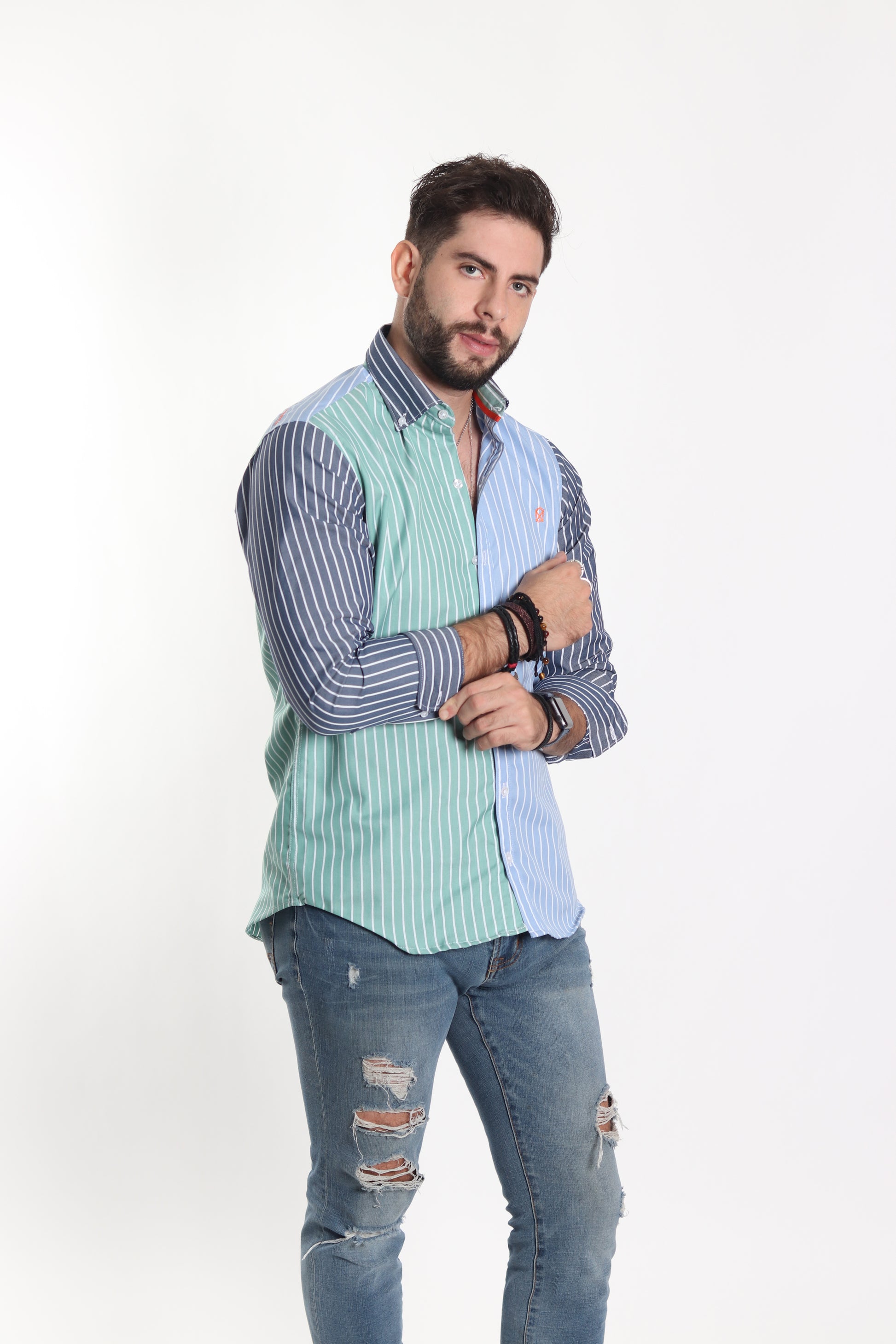 Camisa regular fit en colores combinados. Una prenda cómoda y versátil para lucir con estilo y personalidad. El modelo lleva talla M.