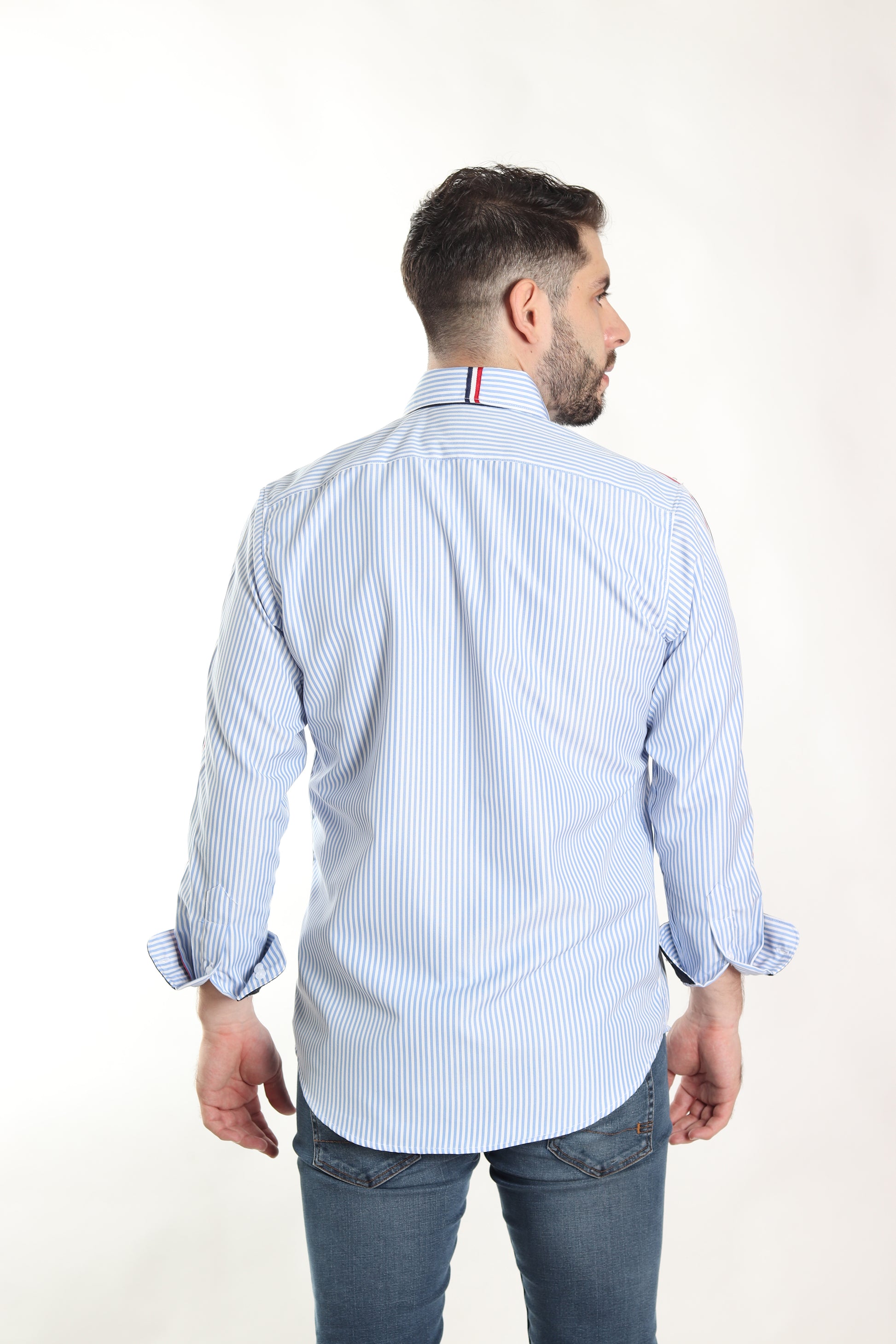 Camisa regular fit en colores combinados. Una prenda cómoda y versátil para lucir con estilo y personalidad. El modelo lleva talla M.