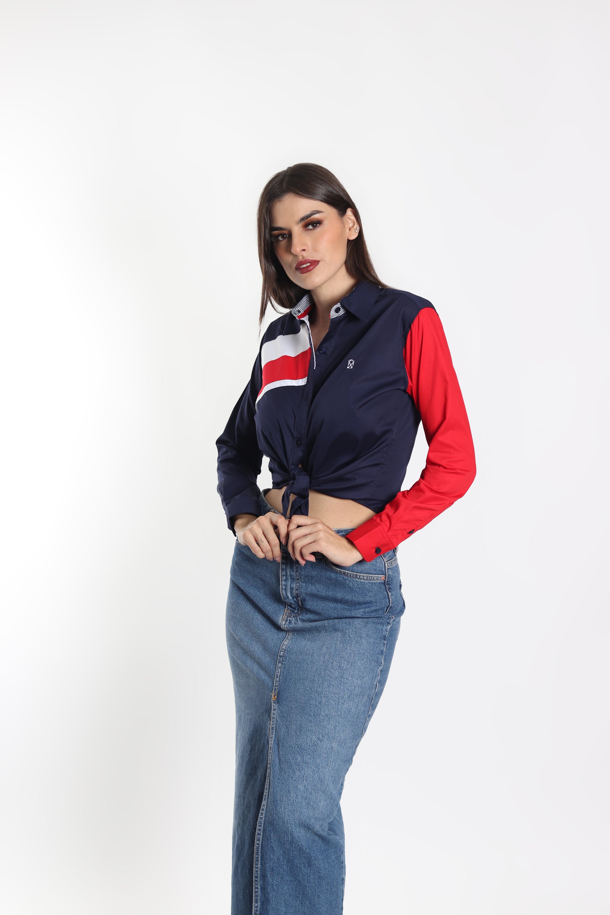 Camisa Muletta regular fit colores en tendencia. Una prenda cómoda y versátil para lucir con estilo en cualquier ocasión. La modelo lleva talla S.