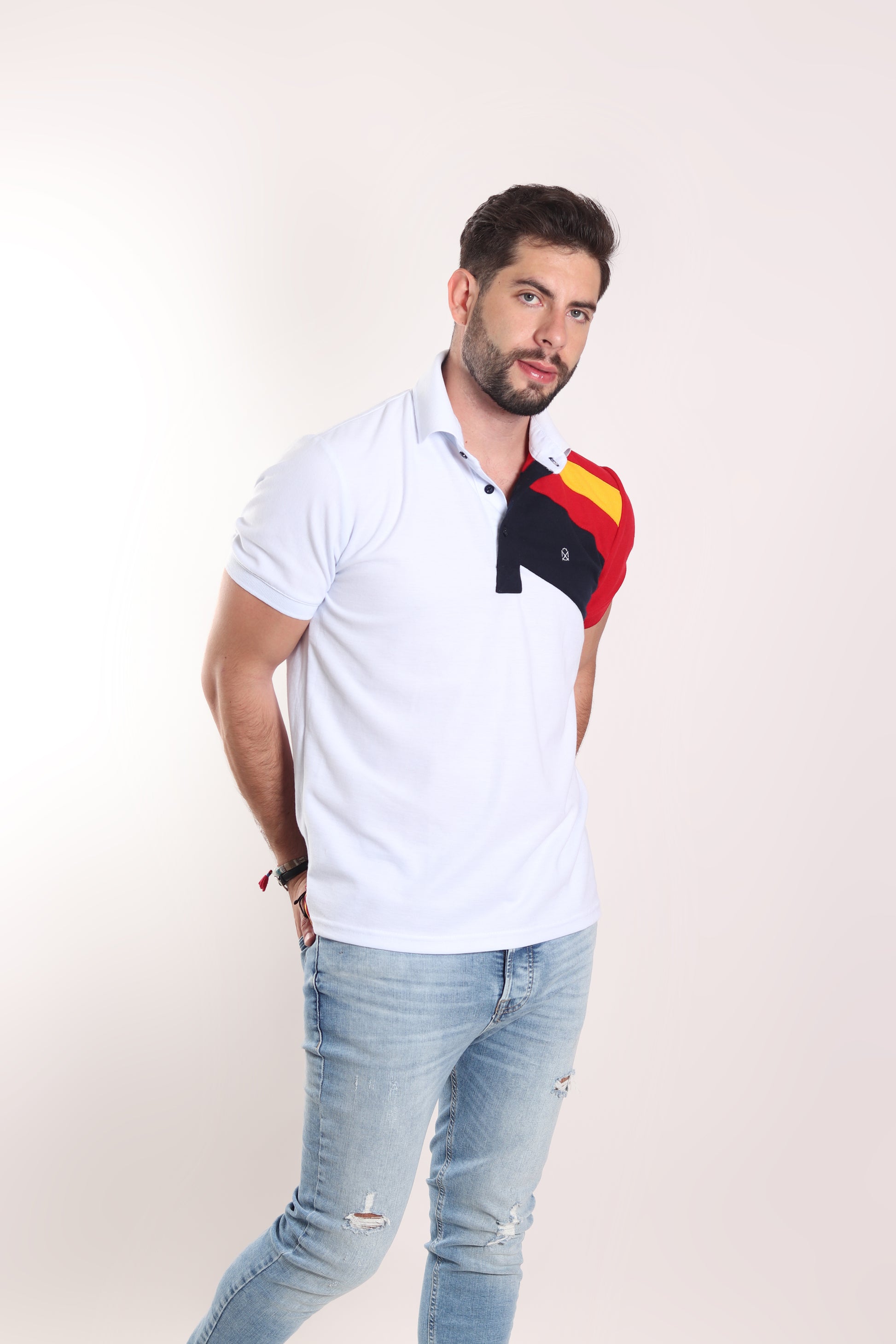 polo regular fit en colores combinados. Una prenda cómoda y versátil para lucir con estilo y personalidad. El modelo lleva talla M.