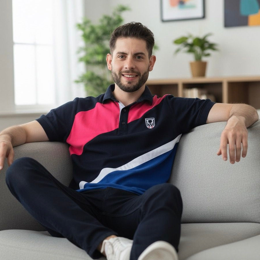 polo regular fit en colores combinados. Una prenda cómoda y versátil para lucir con estilo y personalidad. El modelo lleva talla M.
