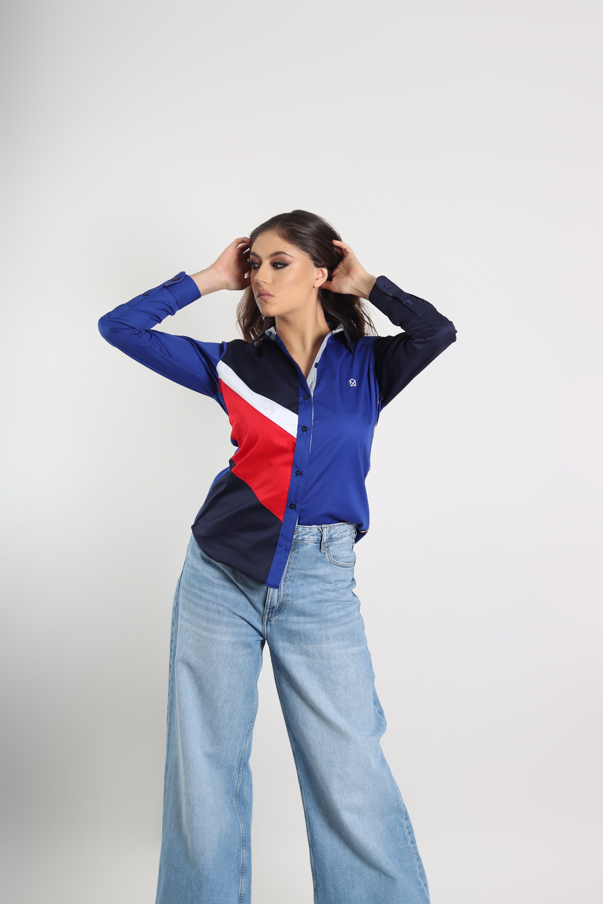 Camisa Muletta regular fit colores en tendencia. Una prenda cómoda y versátil para lucir con estilo en cualquier ocasión. La modelo lleva talla S.