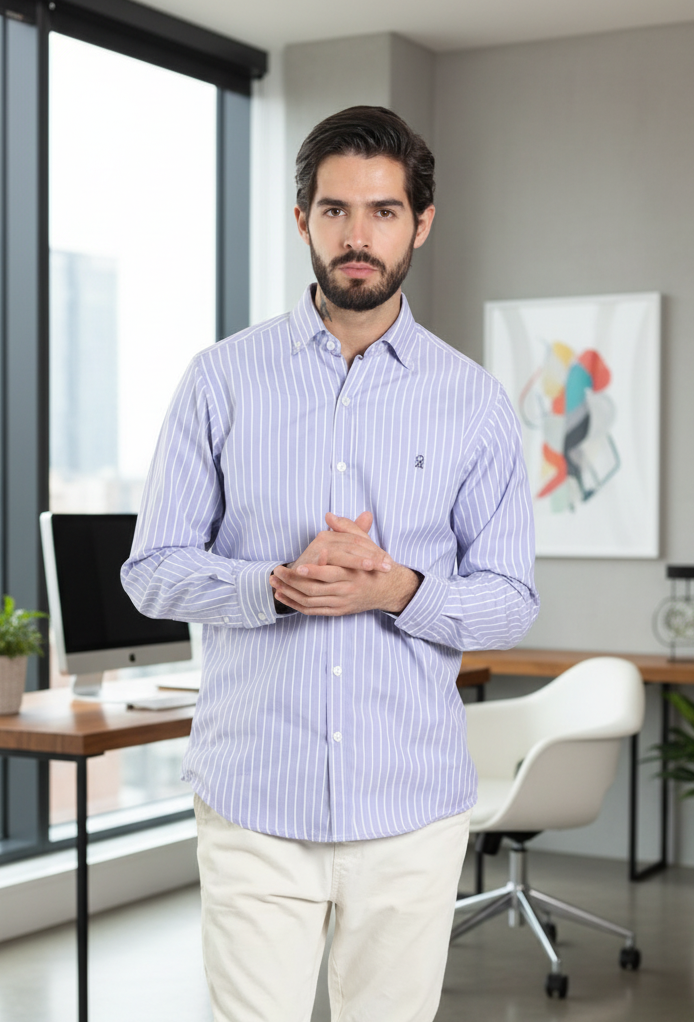 Camisa regular fit en colores combinados. Una prenda cómoda y versátil para lucir con estilo y personalidad. El modelo lleva talla M.