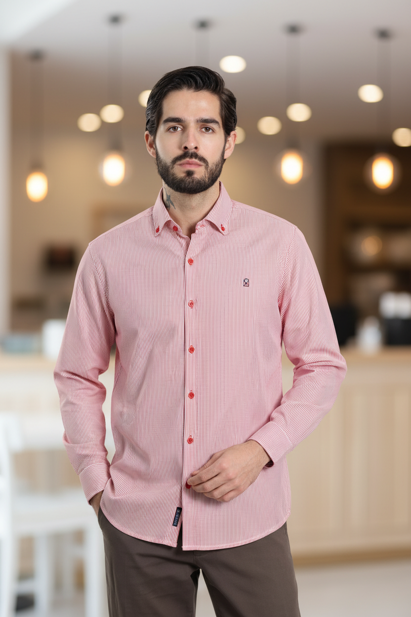 Camisa regular fit en colores combinados. Una prenda cómoda y versátil para lucir con estilo y personalidad. El modelo lleva talla M.