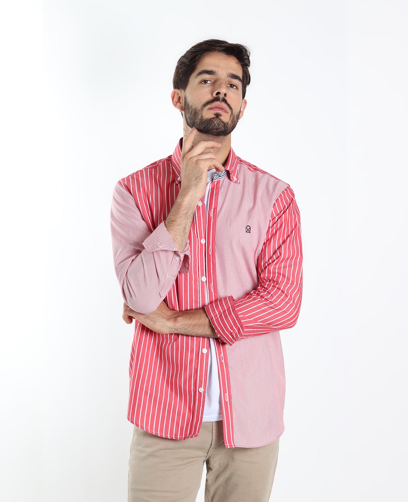 Camisa regular fit en colores combinados. Una prenda cómoda y versátil para lucir con estilo y personalidad. El modelo lleva talla M.