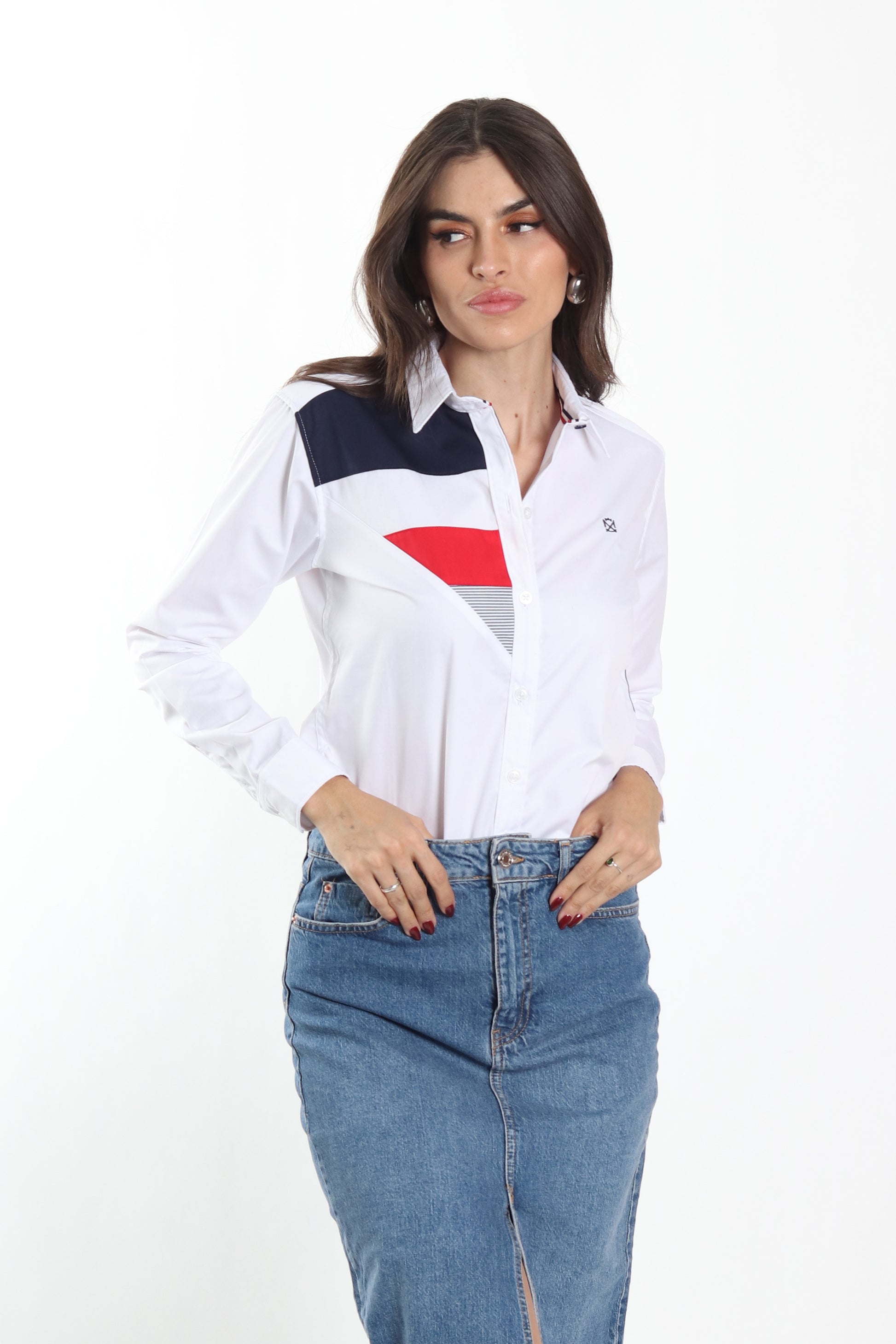 Camisa Muletta regular fit colores en tendencia. Una prenda cómoda y versátil para lucir con estilo en cualquier ocasión. La modelo lleva talla S.