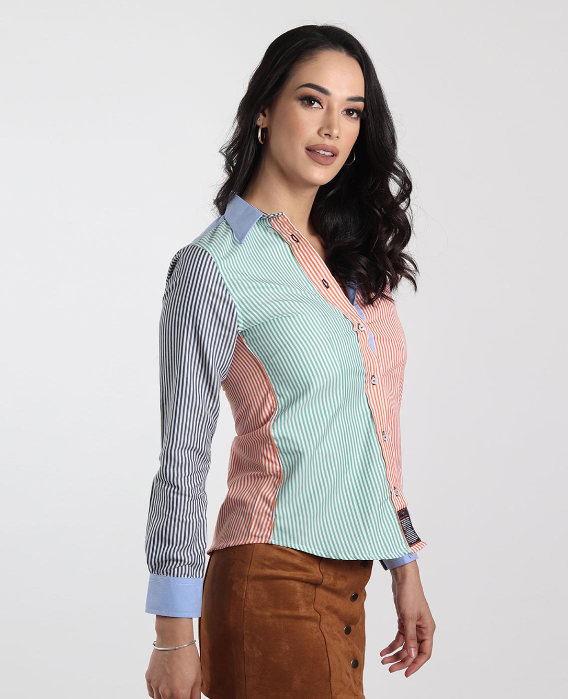 Camisa Muletta regular fit colores en tendencia. Una prenda cómoda y versátil para lucir con estilo en cualquier ocasión. La modelo lleva talla S.