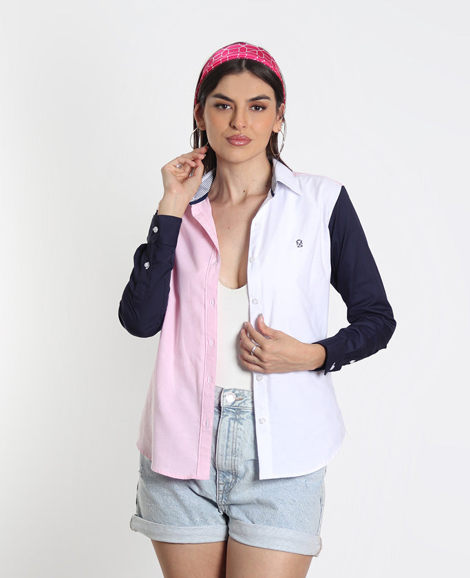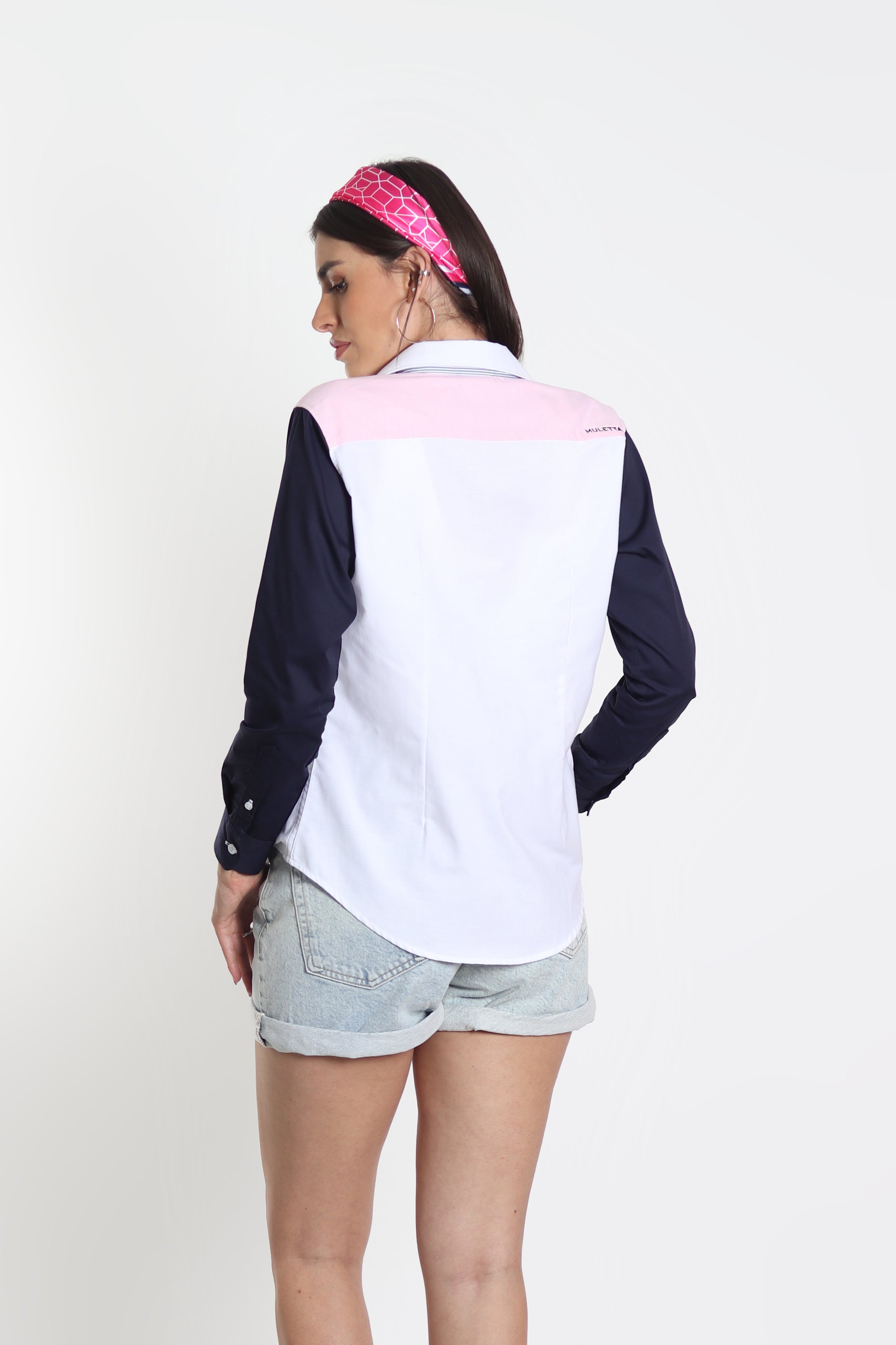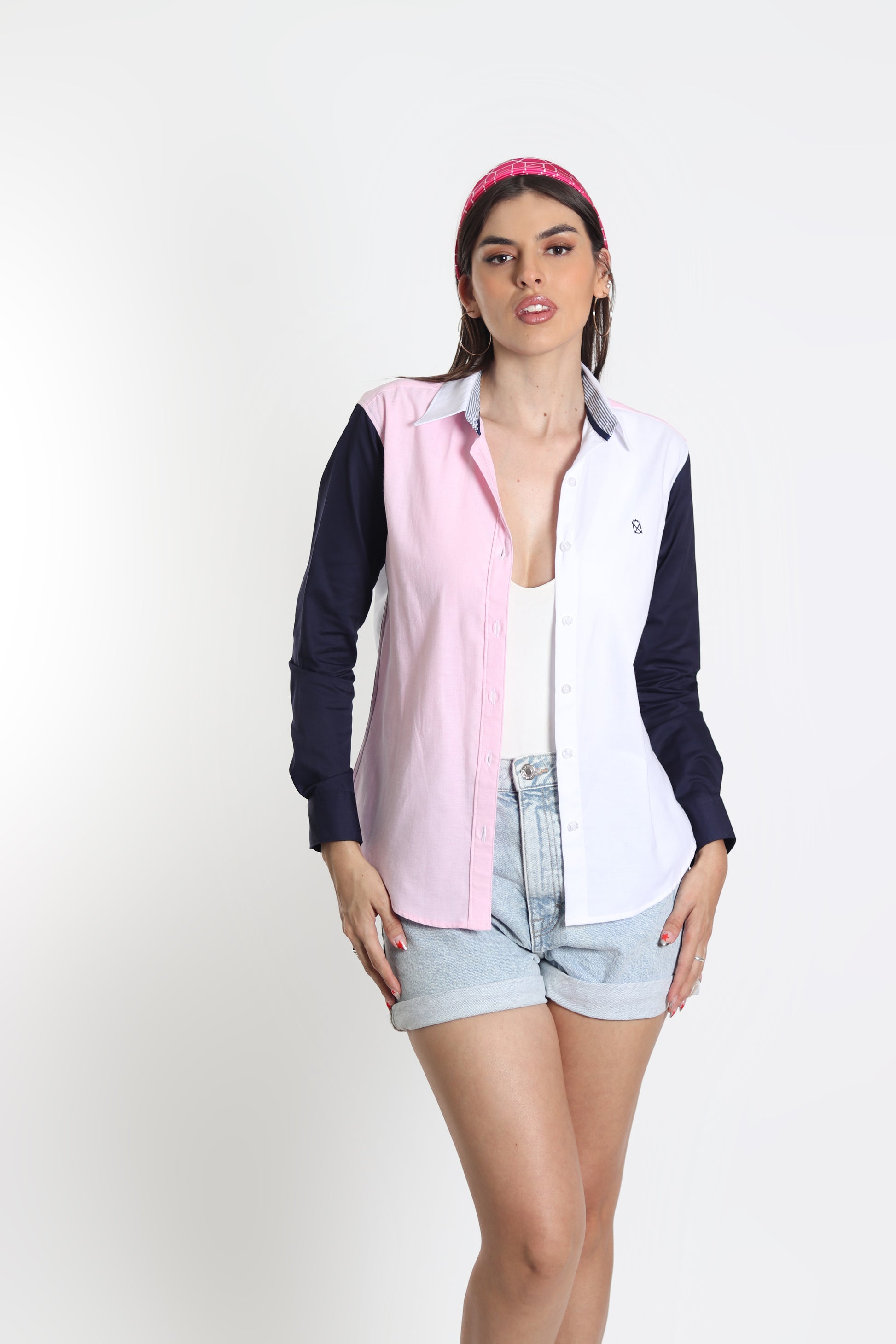 Camisa Muletta regular fit colores en tendencia. Una prenda cómoda y versátil para lucir con estilo en cualquier ocasión. La modelo lleva talla S.