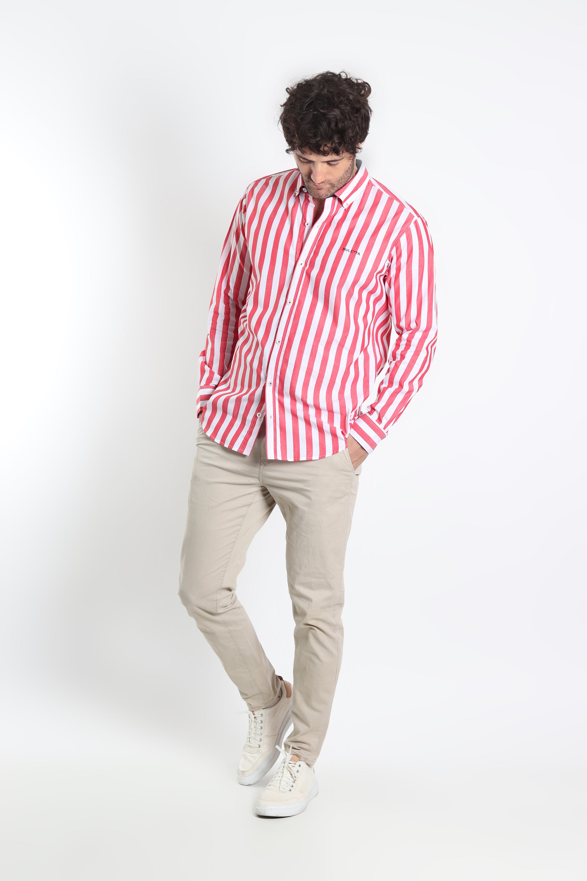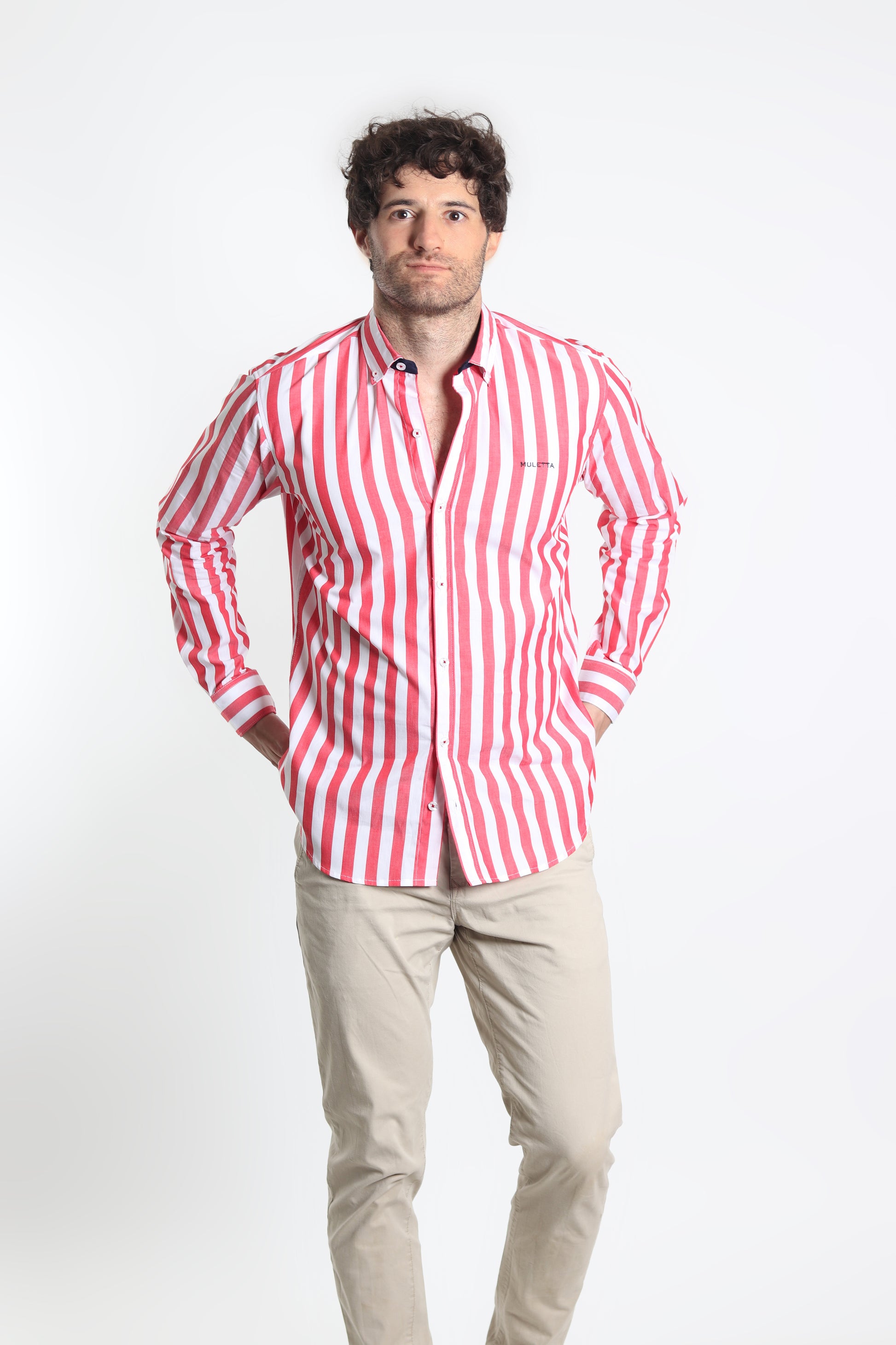 Camisa regular fit en colores combinados. Una prenda cómoda y versátil para lucir con estilo y personalidad. El modelo lleva talla M.
