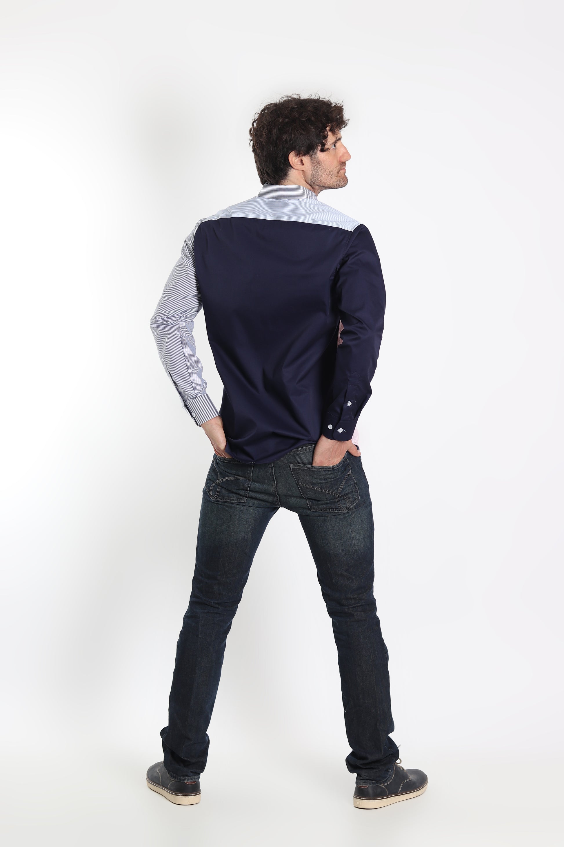 Camisa regular fit en colores combinados. Una prenda cómoda y versátil para lucir con estilo y personalidad. El modelo lleva talla M.