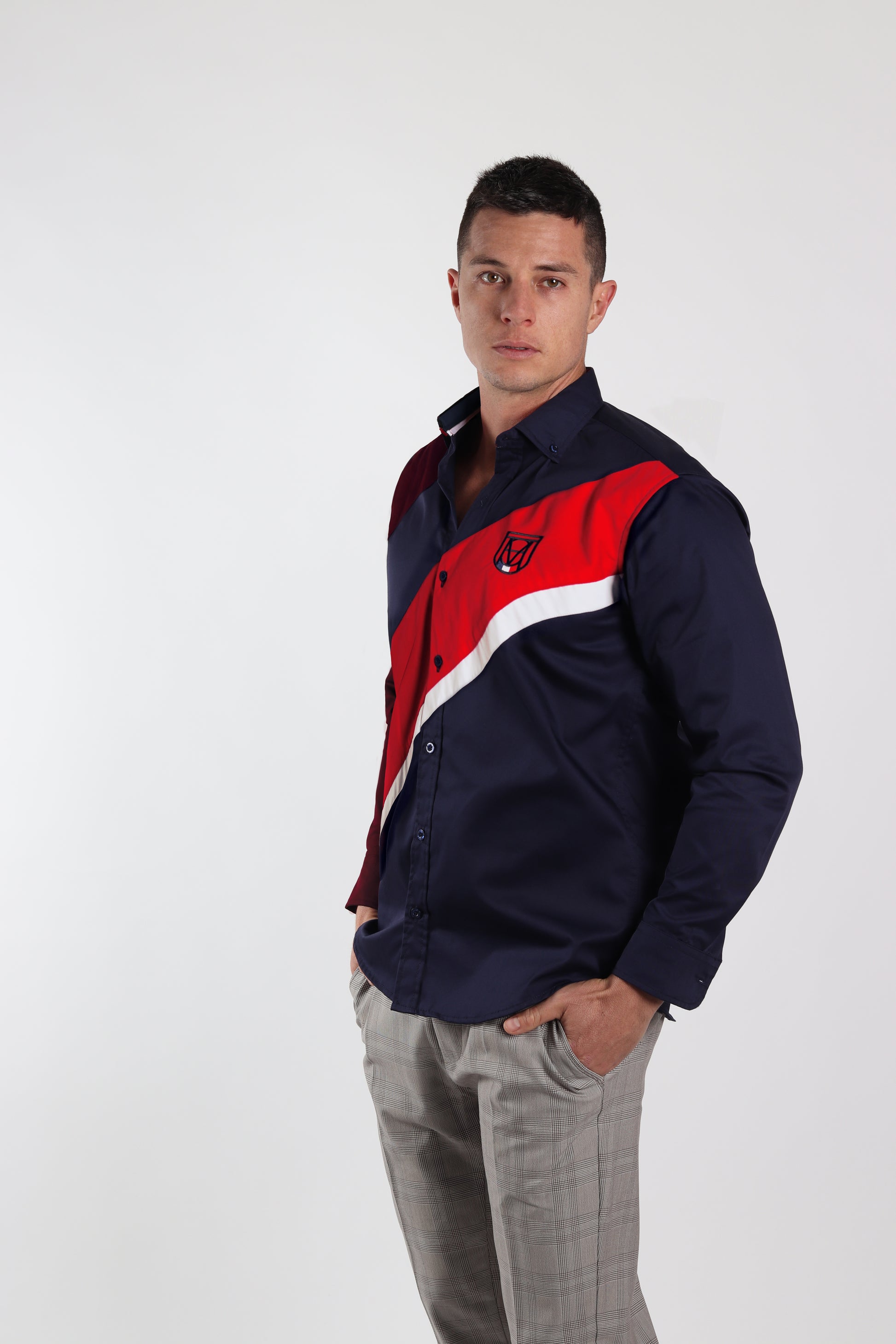 Camisa regular fit en colores combinados. Una prenda cómoda y versátil para lucir con estilo y personalidad. El modelo lleva talla M.