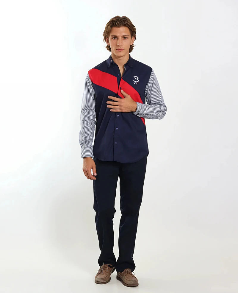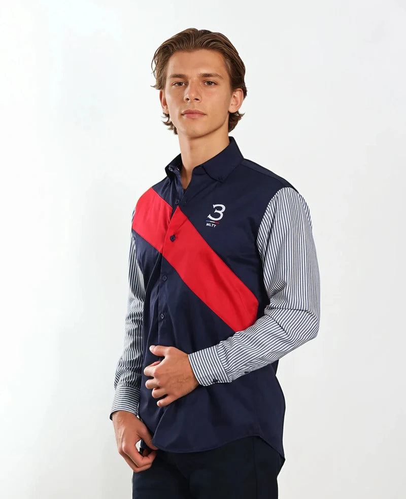 Camisa regular fit en colores combinados. Una prenda cómoda y versátil para lucir con estilo y personalidad. El modelo lleva talla M.