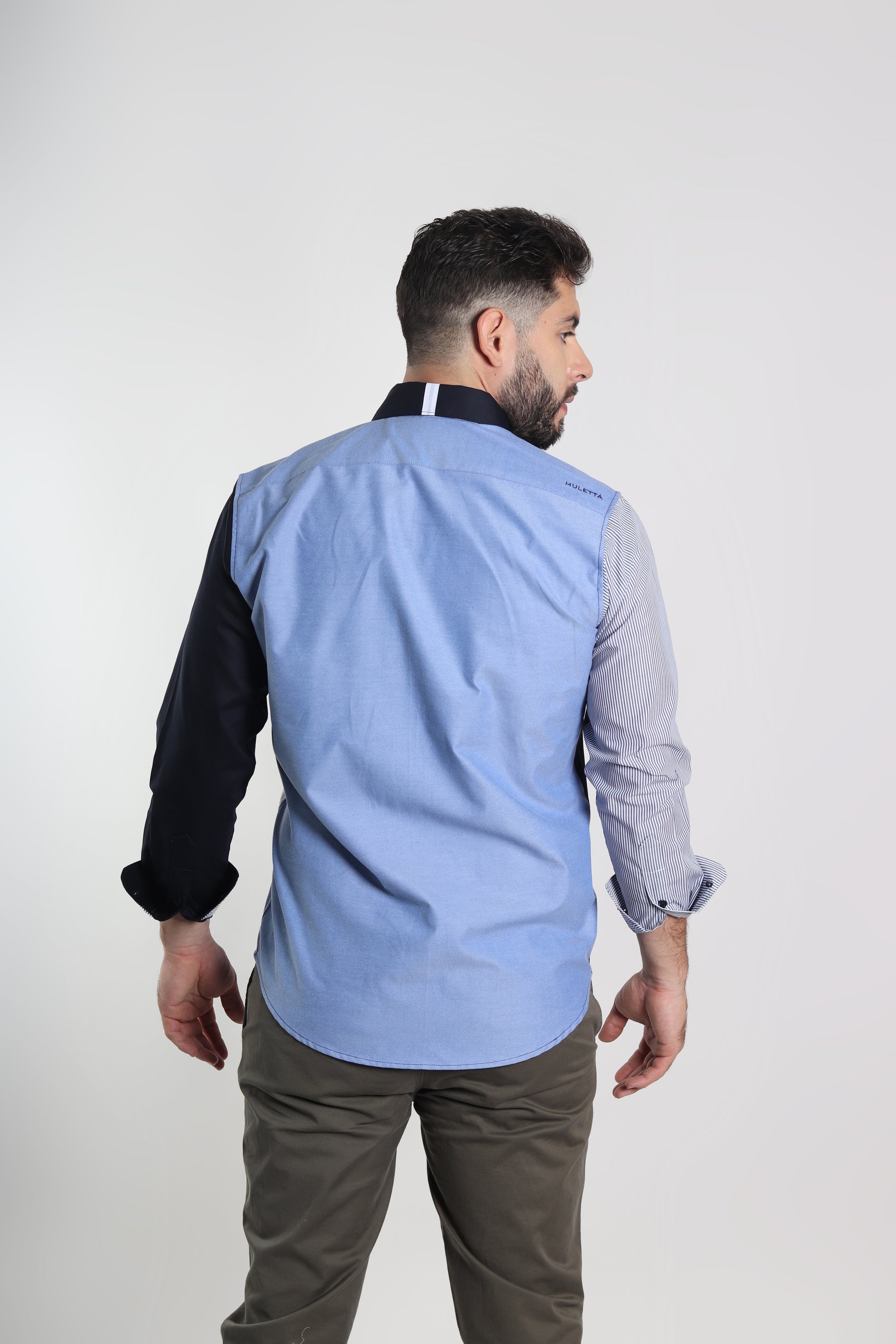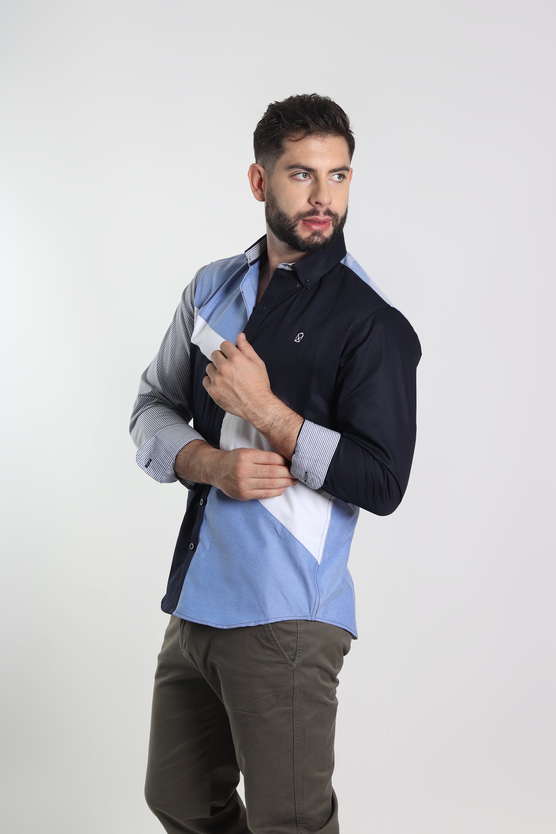 Camisa regular fit en colores combinados. Una prenda cómoda y versátil para lucir con estilo y personalidad. El modelo lleva talla M.