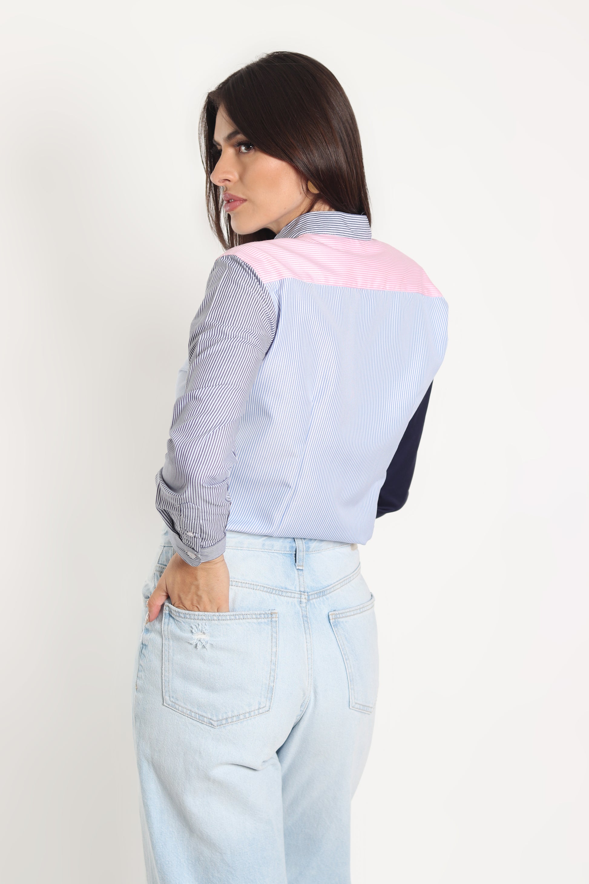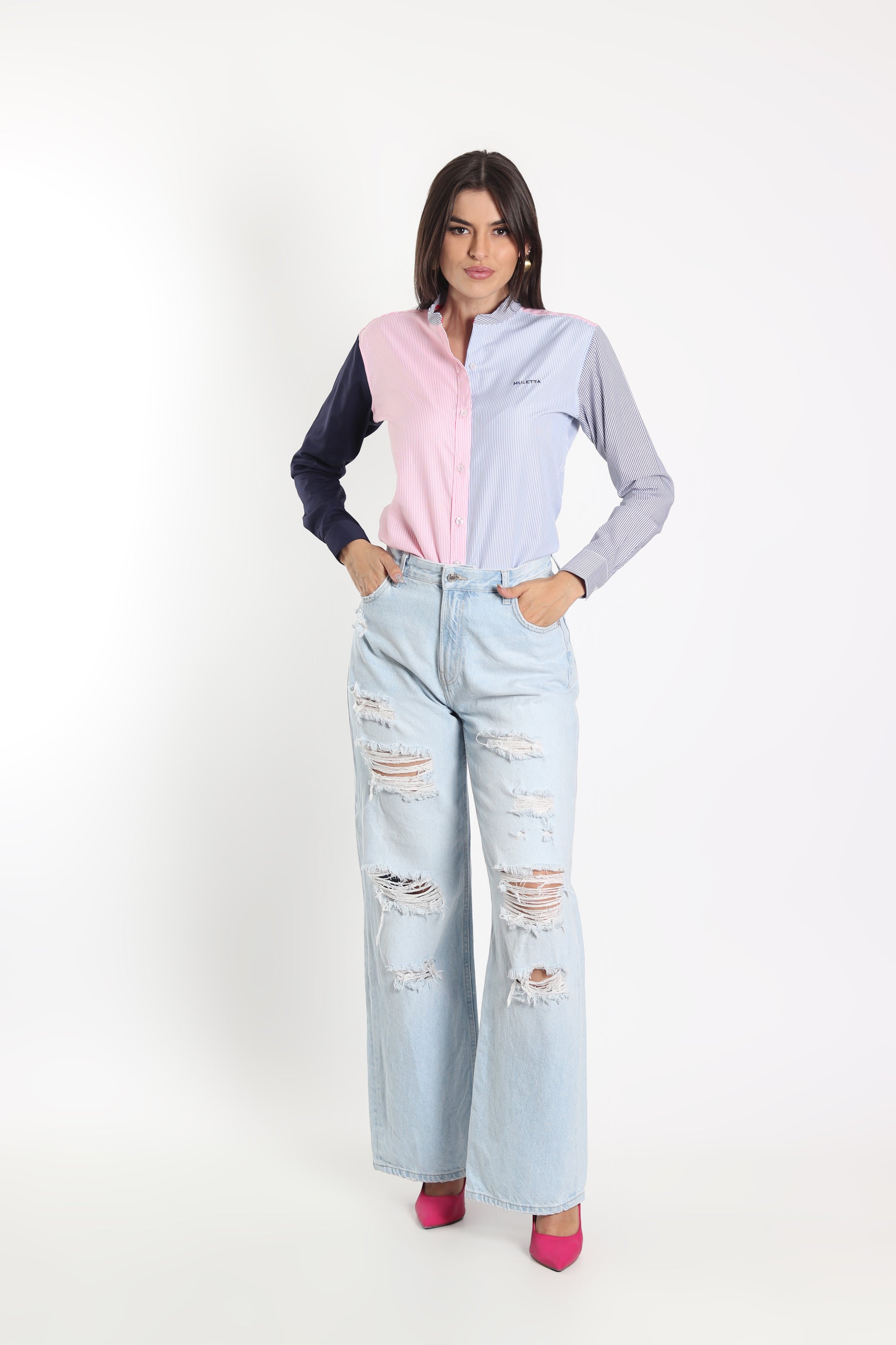 Camisa Muletta regular fit colores en tendencia. Una prenda cómoda y versátil para lucir con estilo en cualquier ocasión. La modelo lleva talla S.