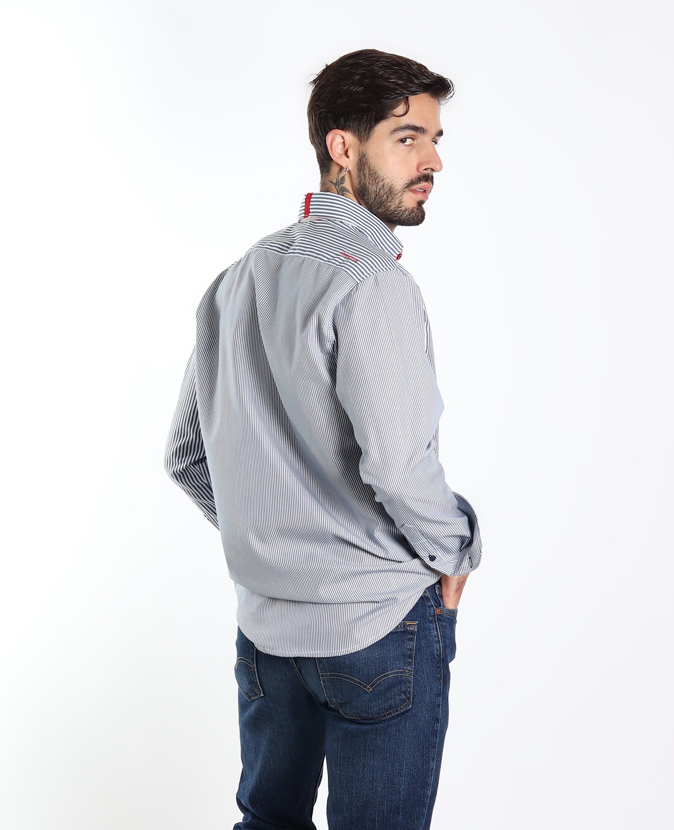 Camisa regular fit en colores combinados. Una prenda cómoda y versátil para lucir con estilo y personalidad. El modelo lleva talla M.