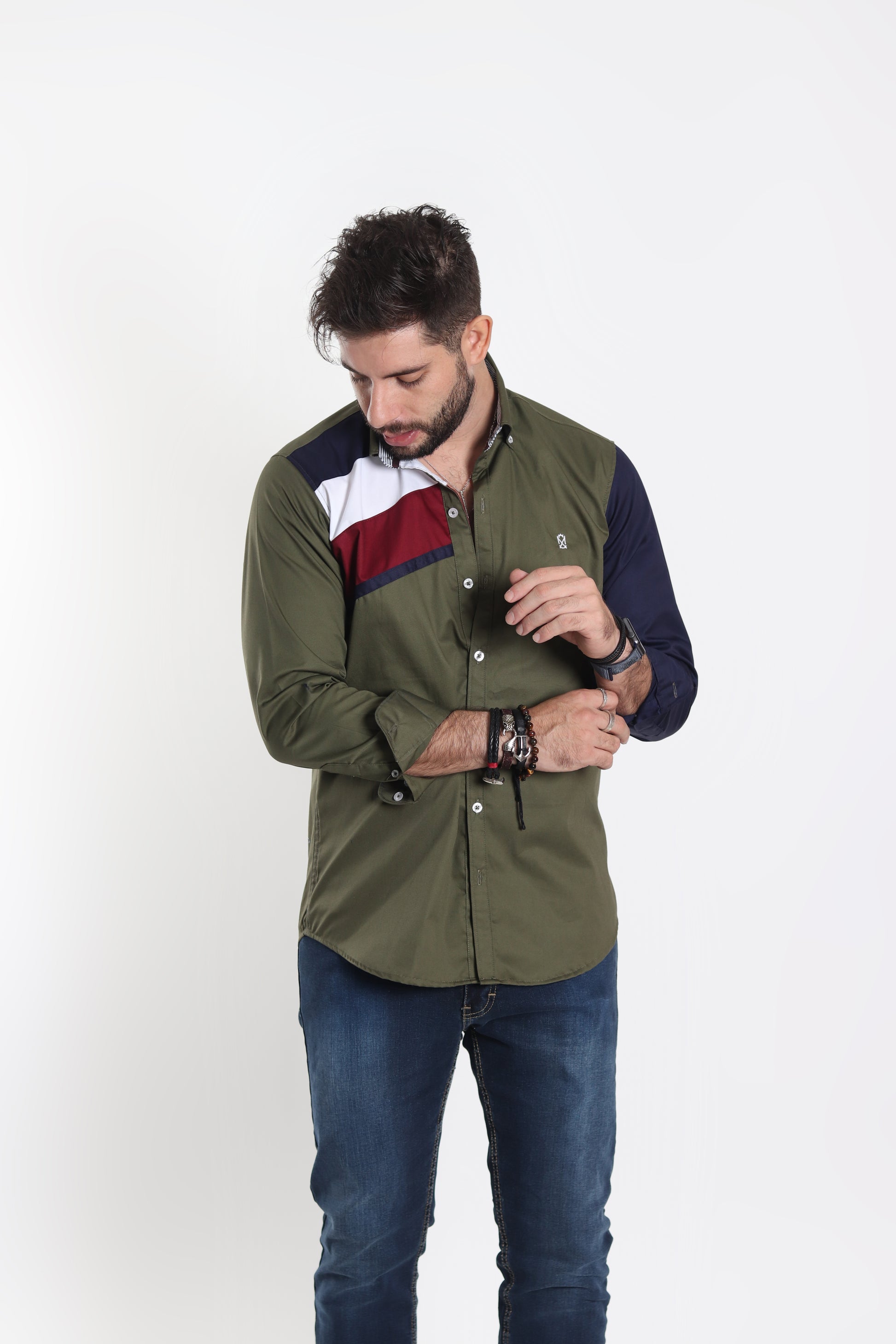 Camisa regular fit en colores combinados. Una prenda cómoda y versátil para lucir con estilo y personalidad. El modelo lleva talla M.