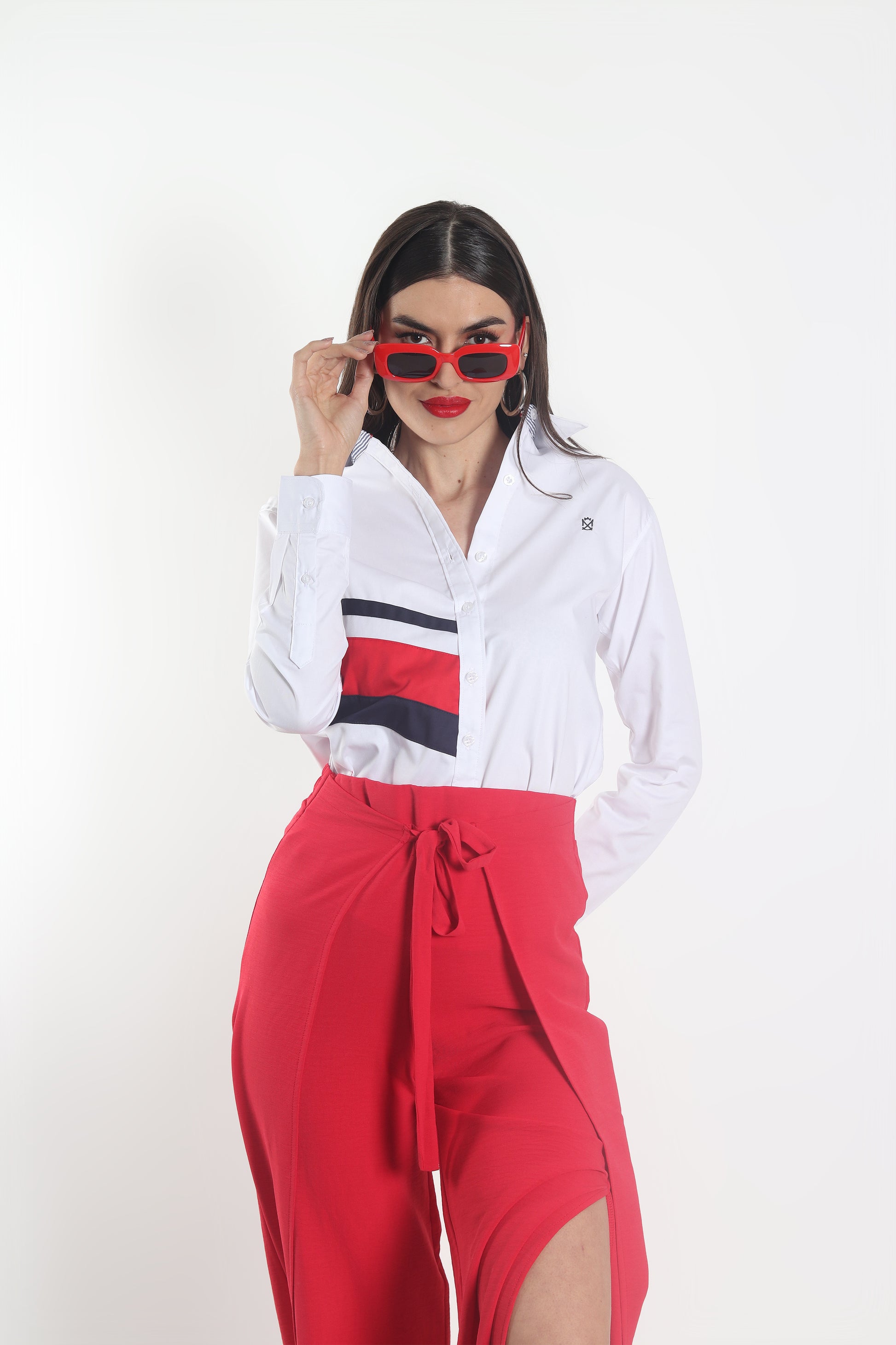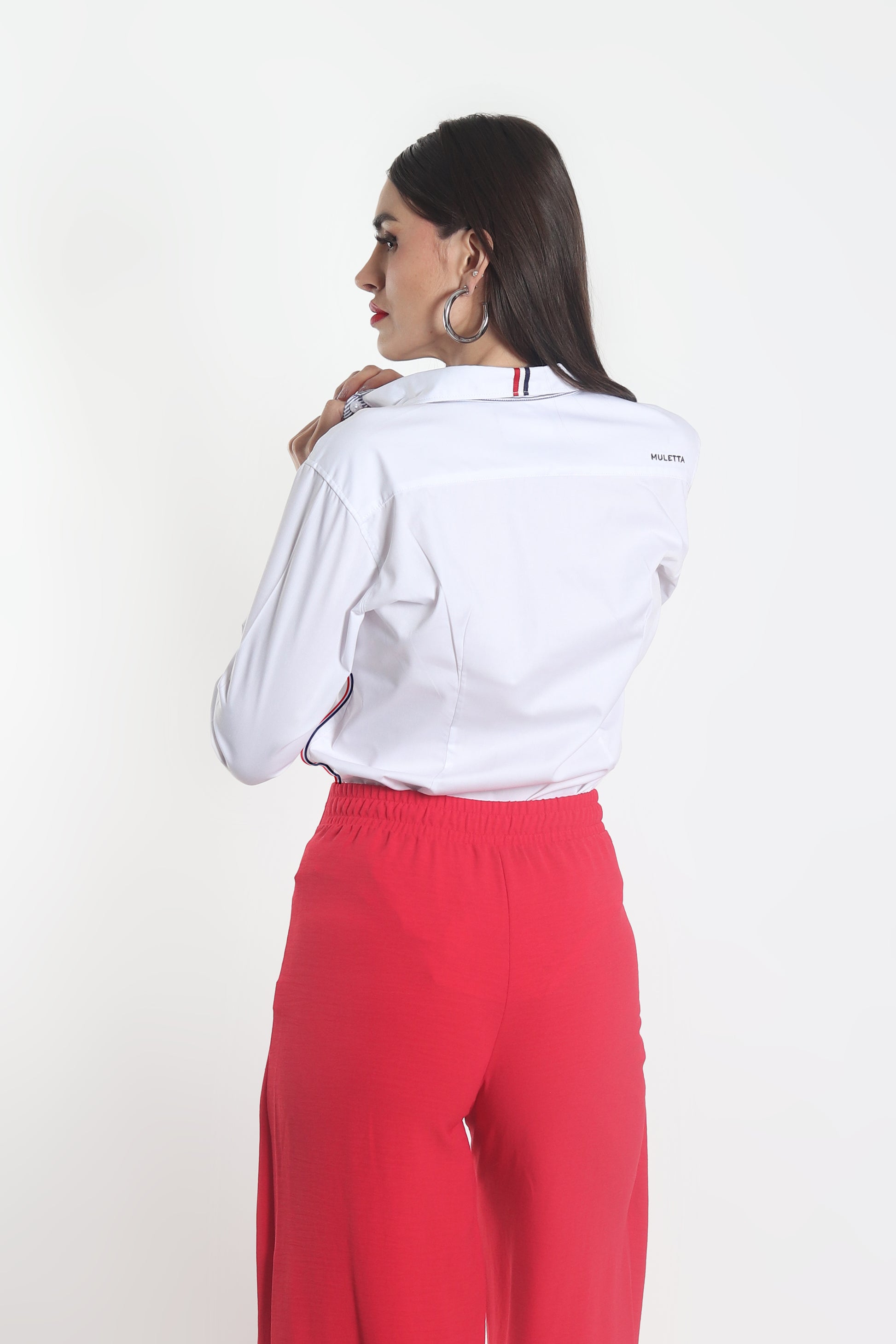Camisa Muletta regular fit colores en tendencia. Una prenda cómoda y versátil para lucir con estilo en cualquier ocasión. La modelo lleva talla S.