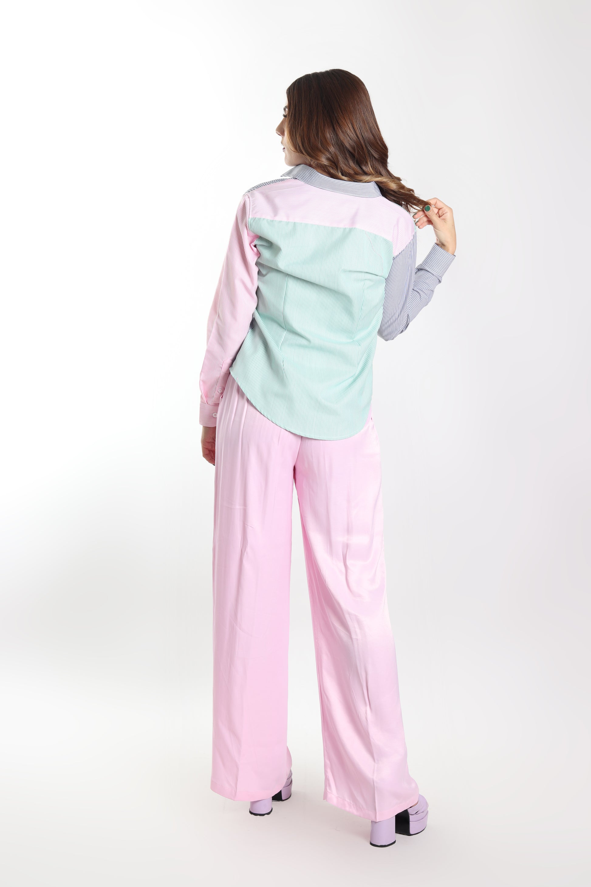 Camisa Muletta regular fit colores en tendencia. Una prenda cómoda y versátil para lucir con estilo en cualquier ocasión. La modelo lleva talla S.